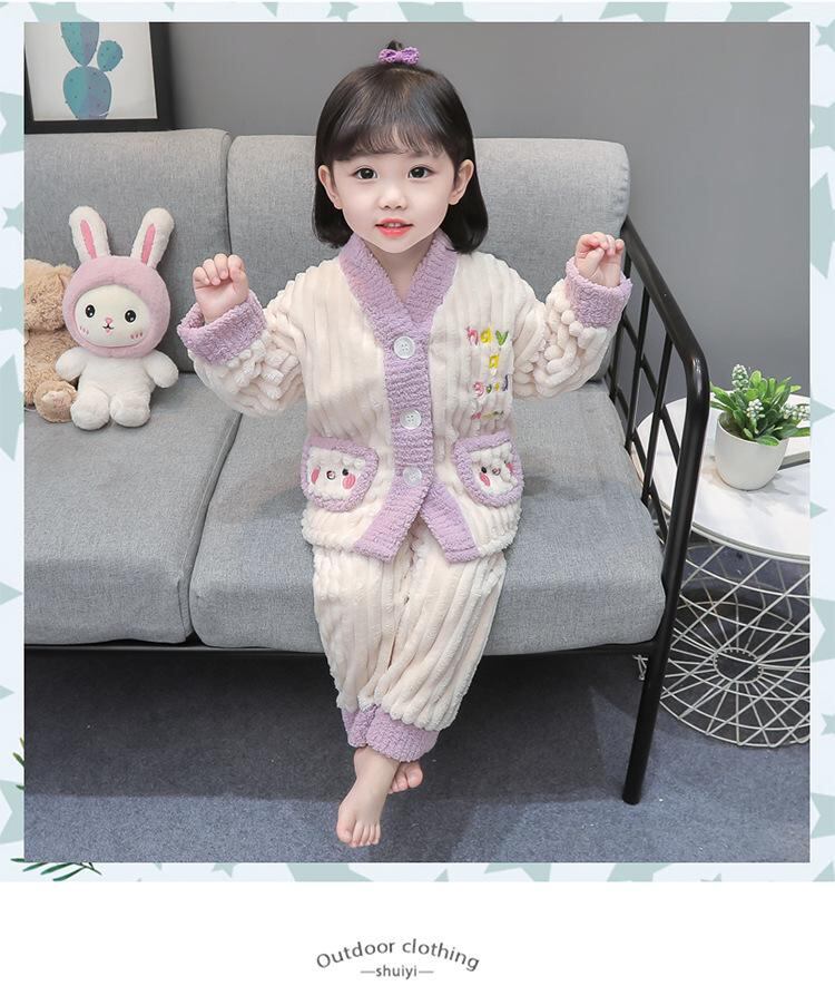 子供用パジャマ 秋冬 女児 珊瑚フリース 厚手 保温 ベビー服 上下セット ルームウェア かわいい 刺繡 部屋着