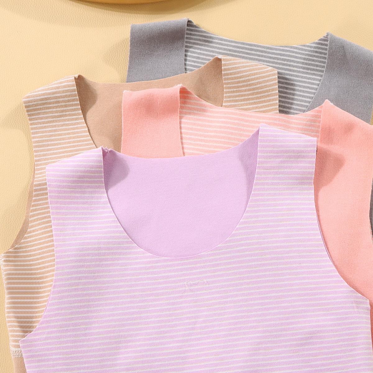 ベビー キッズ ベスト 秋冬 両面フリース あったか インナー Vネック 防寒着 部屋着 ストライプ 80 90 100 110 120 130