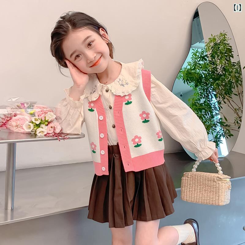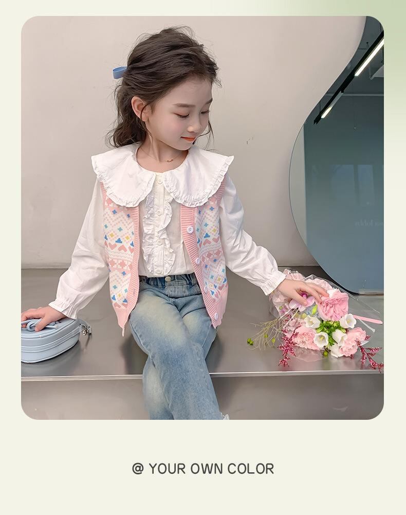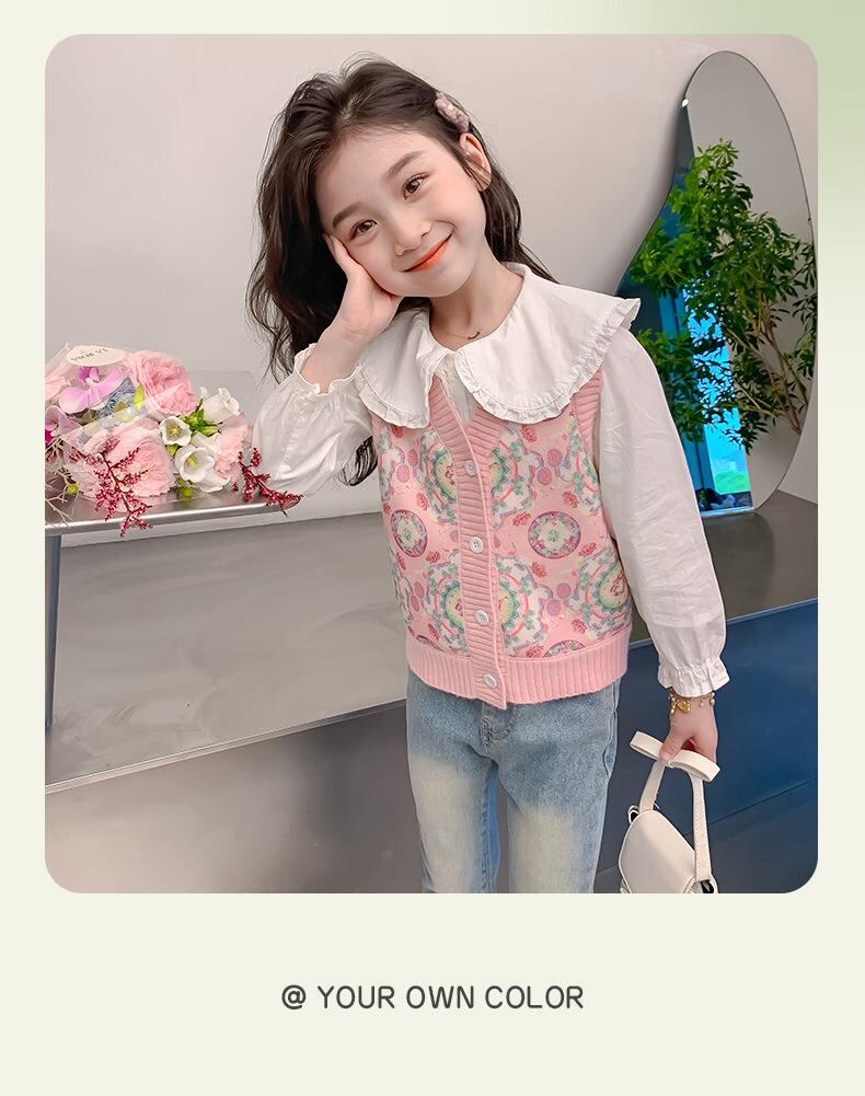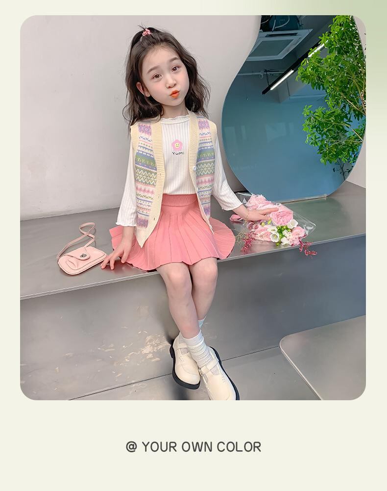 子供服 ベスト 女の子 ニットベスト 春秋 中小 子供 針織 チョッキ 毛糸 防寒 普段着 かわいい おしゃれ ピンク系 グリーン系 ベージュ 90 100 110 120 130 140 ポリエステル