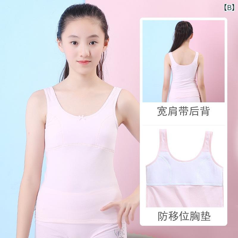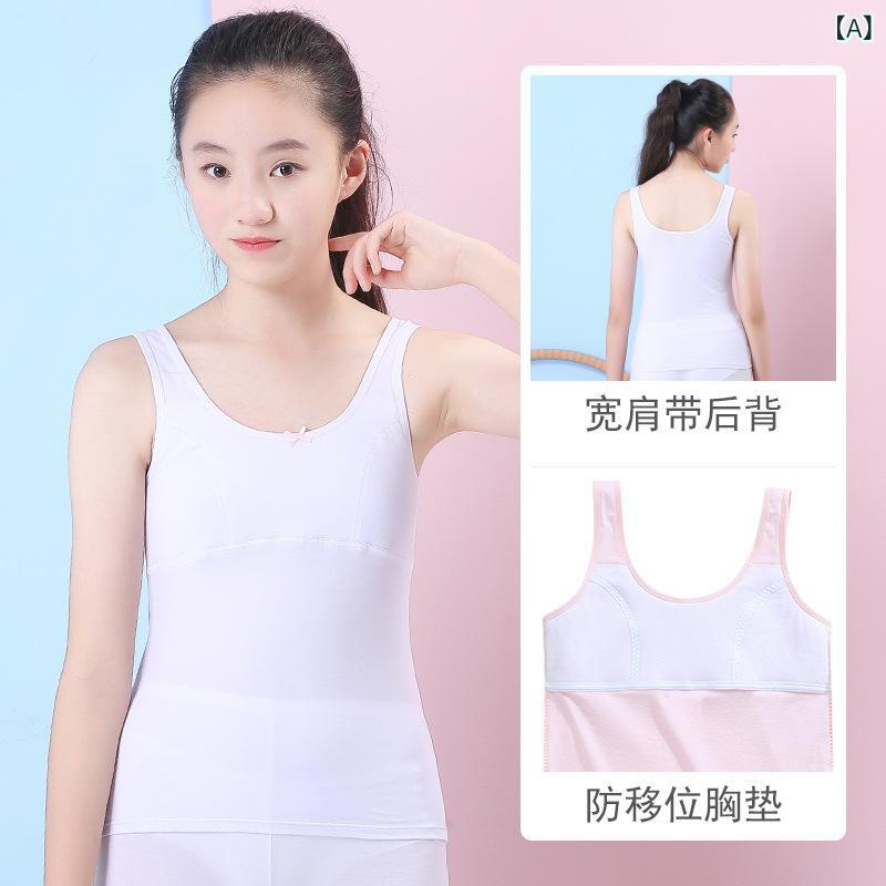 子供用タンクトップ 女児用下着 小学生 中学生 向け 胸 二重 インナー 発達期 女の子 コットン キャミソール 肌着 140 150 160 170
