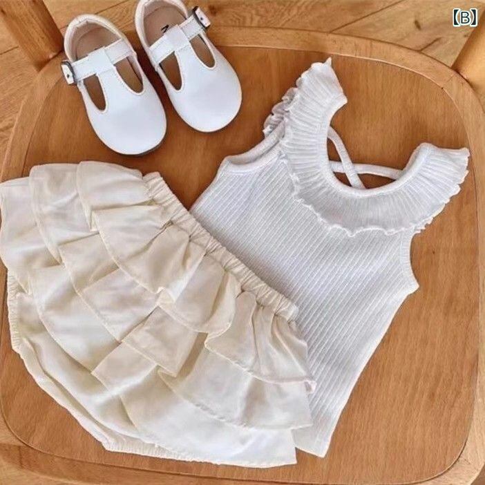 タンクトップ キッズ 女の子 トップス ノースリーブ カットソー 木耳エッジ フリル 無地 ふんわり かわいい ガーリー おしゃれ 韓国風 子供服 普段着 お出かけ 春夏 90 100 110 120 130 140 ピンク ホワイト ブルー ベージュ