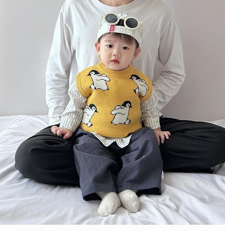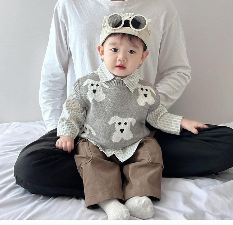 ベビー服 子供服 ニットベスト 春秋 動物柄 男の子 女の子 かわいい 幼児 1歳 2歳 3歳 グレー イエロー 紺色 ブルー Tシャツ インナー 愛心柄シャツ ブラウス カフェ色 ワークパンツ 杏色 刺しゅうパンツ 紺色 刺しゅうパンツ 73 80 9