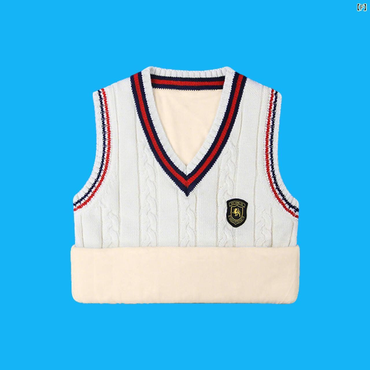 子供服 ベスト 春秋 ニット スクール風 制服 トップス 綿 ニットベスト セーター ノースリーブ アウター 通園 通学 幼稚園 保育園 小学生 男の子 女の子