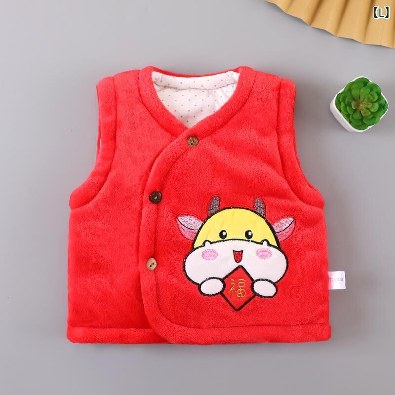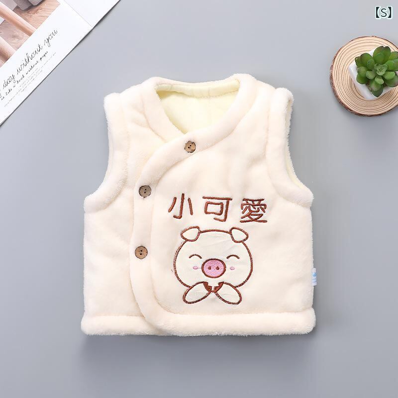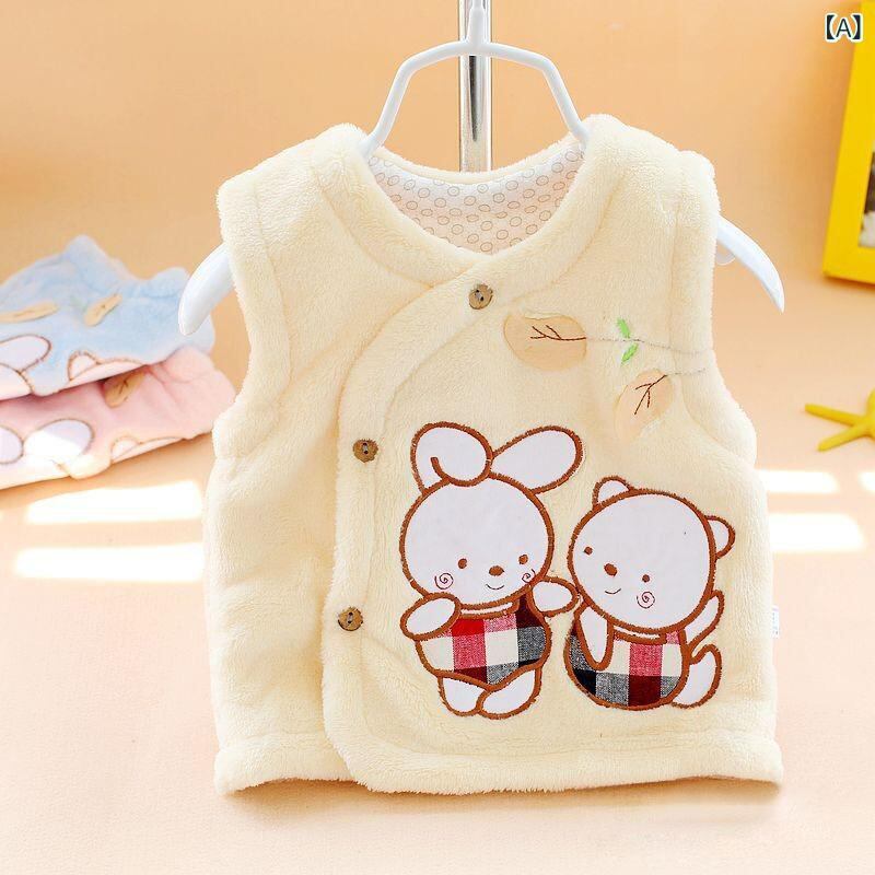 ベビー服 子供服 ベスト 春秋 冬 新生児 幼児 赤ちゃん 珊瑚フリース コットン裏地 防寒 あったか かわいい ウサギ クマ アニマル柄 イエロー ピンク ブルー レッド 66cm 73cm 80cm 90cm