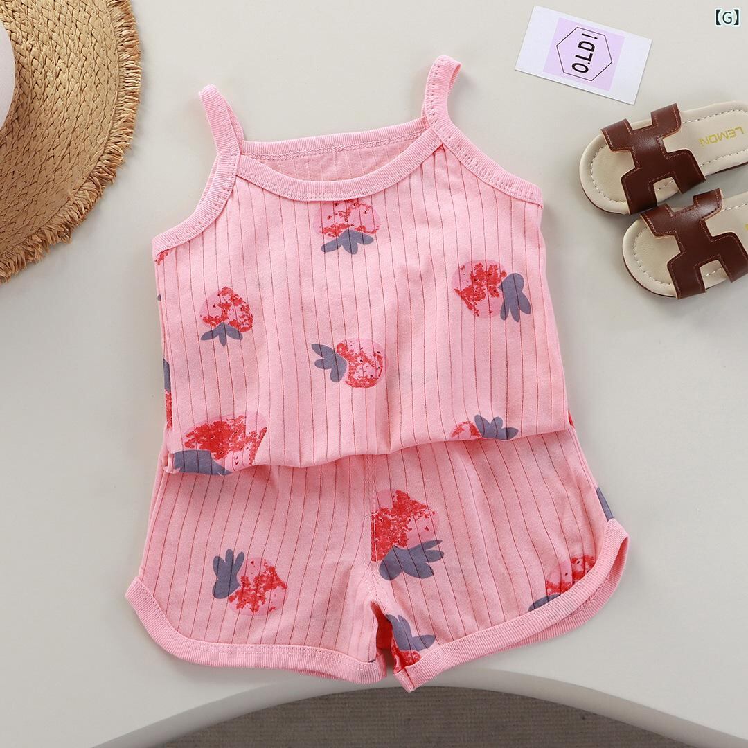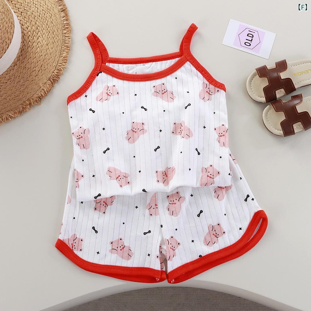 子供服 女の子 タンクトップ ショートパンツ 全綿 A類 吊り クマ リンゴ 花柄 ベビー キッズ パジャマ 上下セット 80 90 100 110 120 130 140 150 160