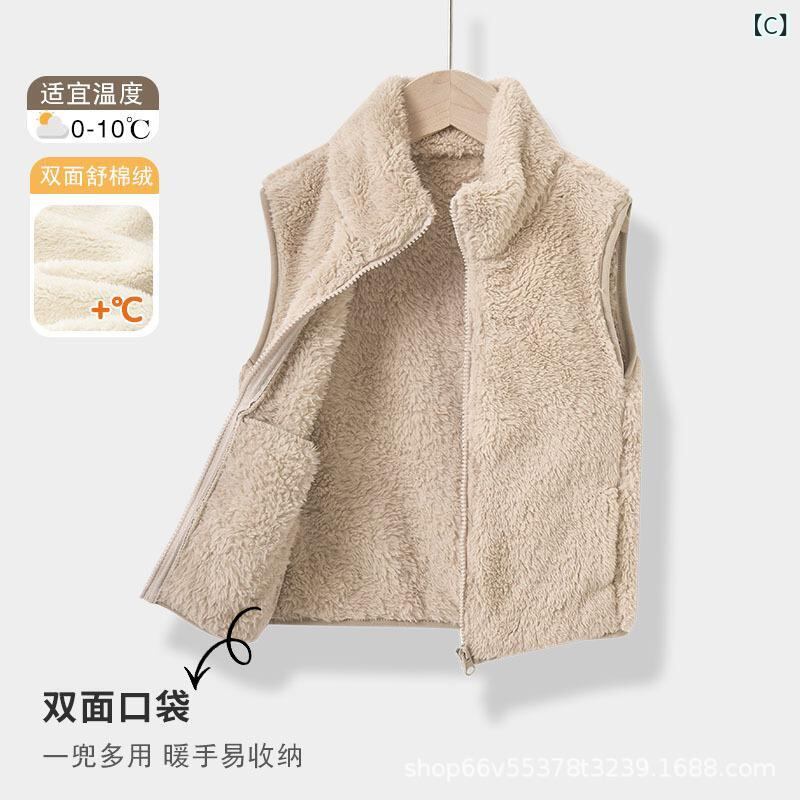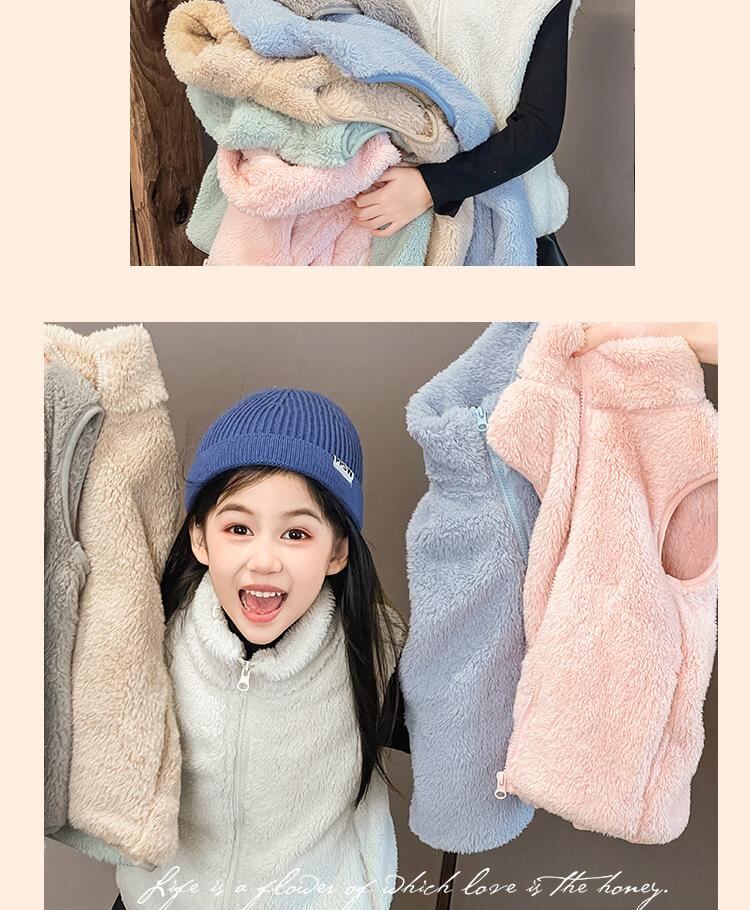 子供用フリースベスト 男の子 女の子 珊瑚フリース 両面フリース 厚手 秋冬 親子ペア チョッキ 防寒 部屋着 アウトドア ミルクホワイト グレー ブラウン ベージュ ピンク ブルー