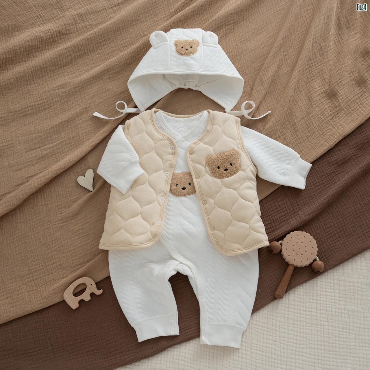 ベビー服 ベビーベスト 冬用 中綿入り あったか 防寒 チョッキ 男女兼用 赤ちゃん 新生児 コットン かわいい クマ柄 裏地付き 柔らかい 肌に優しい 快適 普段使い お出かけ