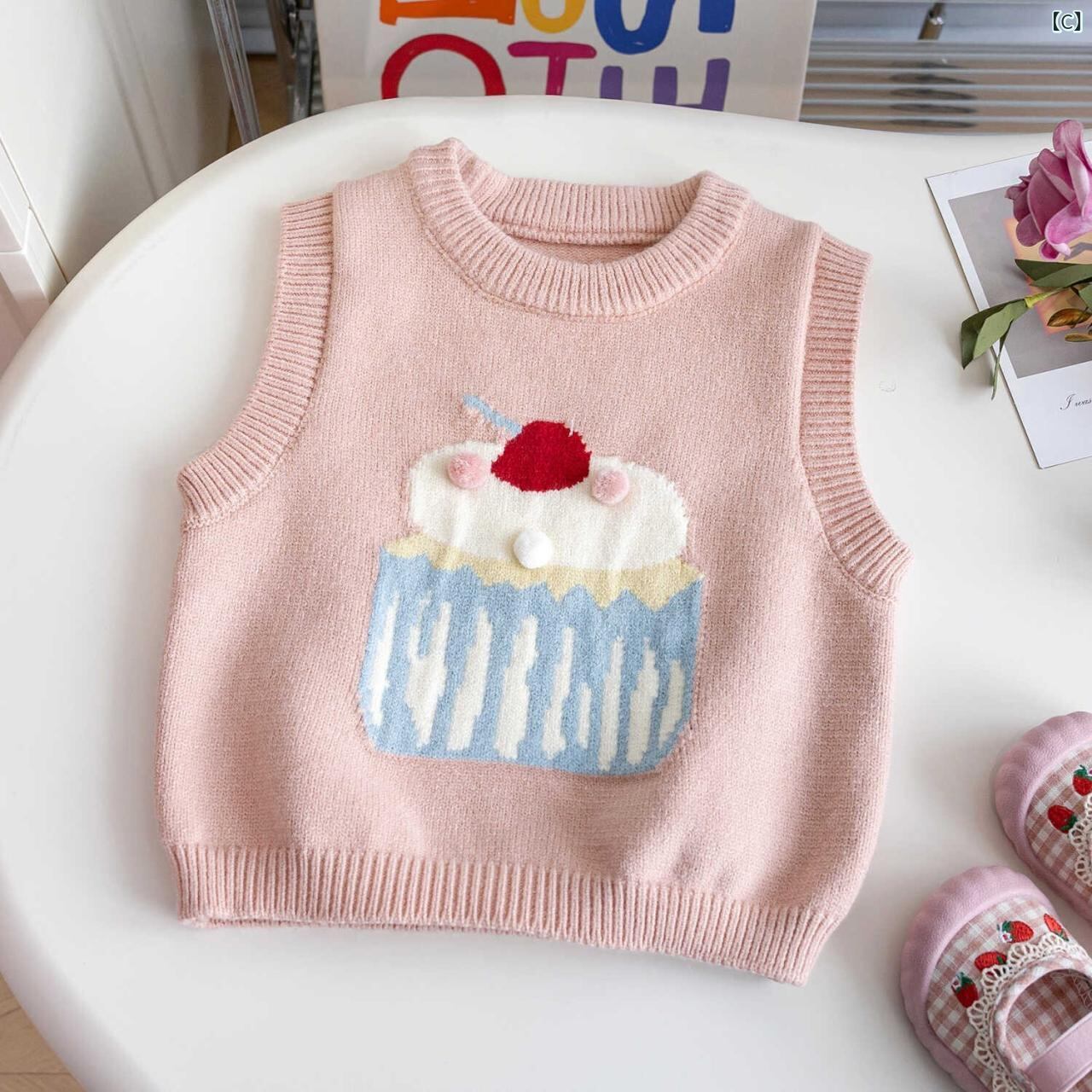 ニットベスト 女児 ベビー 韓国風 子供服 かわいい ノースリーブ トップス 春秋 乳幼児 幼児 普段着 おしゃれ着 お出かけ着 80 90 100 110 120 130