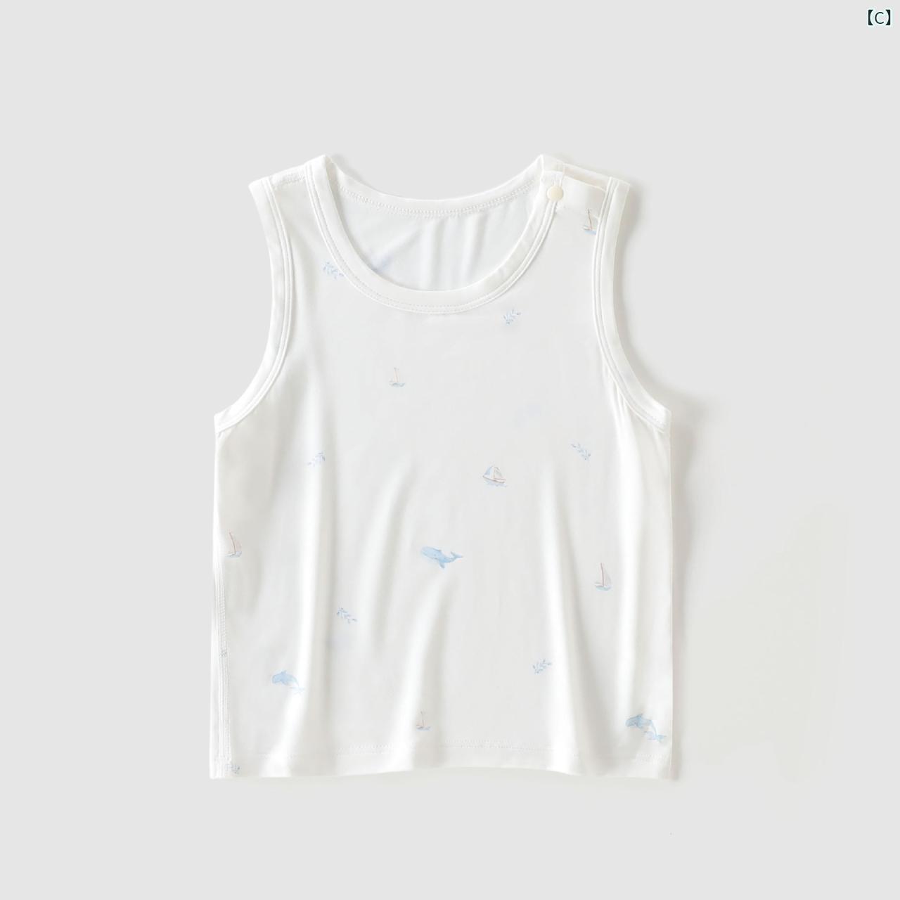 ベビー服 ベスト 春夏 赤ちゃん ノースリーブTシャツ 竹繊維 モダール かわいい 柔らかい 接触冷感 吸湿速乾 73cm 80cm