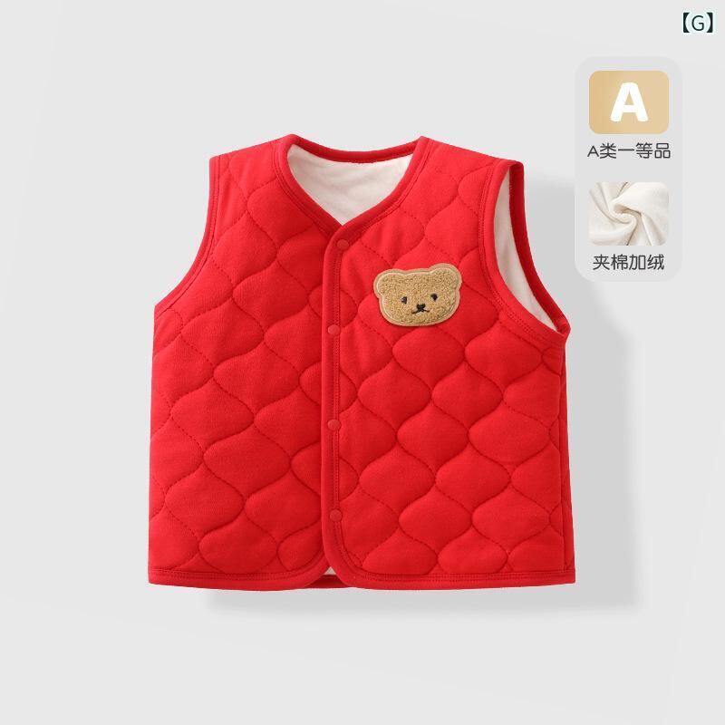 子供用ベスト 秋冬 加綿入り 男の子 幼児 暖か 背心 アウター ベージュ系 熊 パンダ