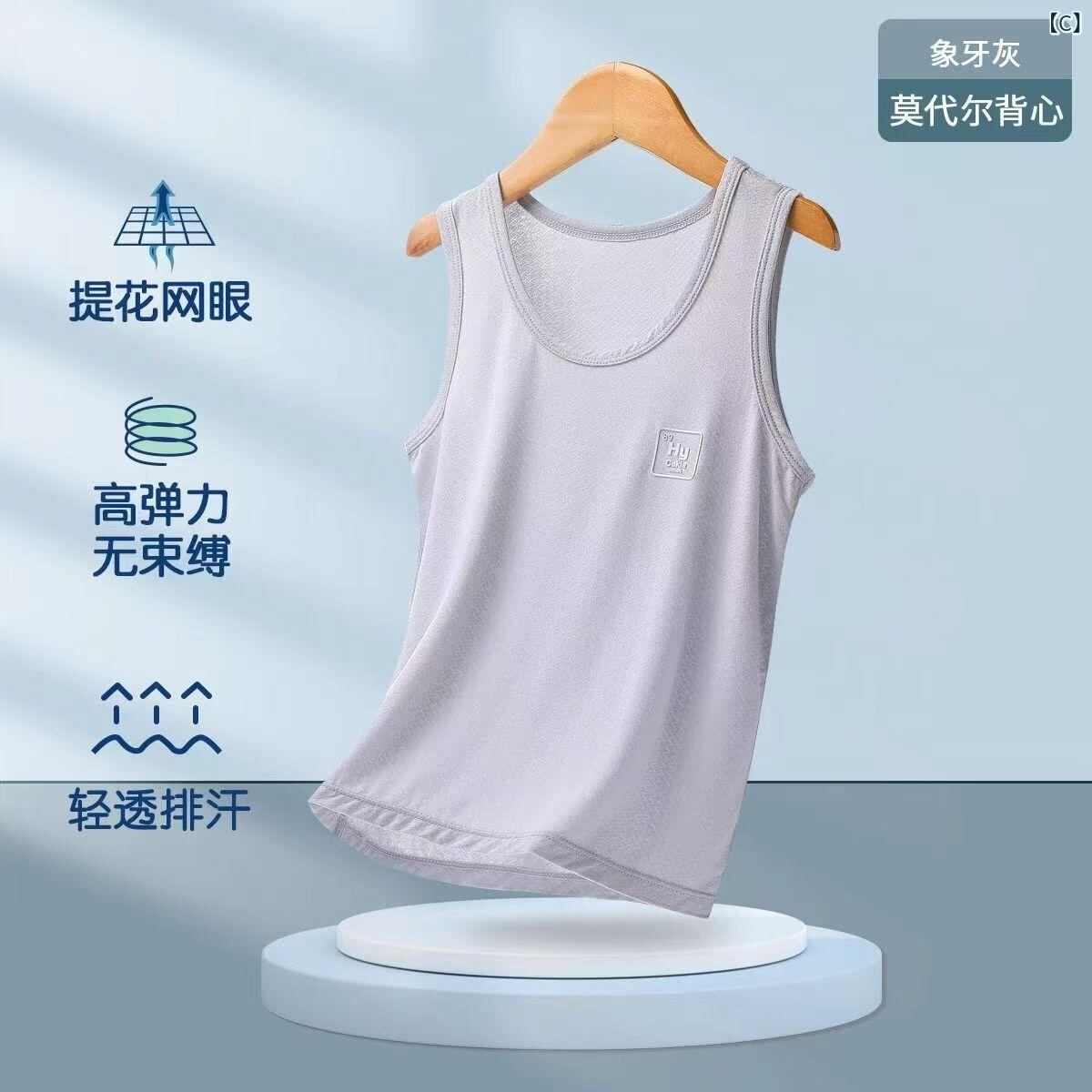 キッズ 男の子用 タンクトップ モダール インナー 接触冷感 通気性 ノースリーブ 子供服 ボーイズ 肌着