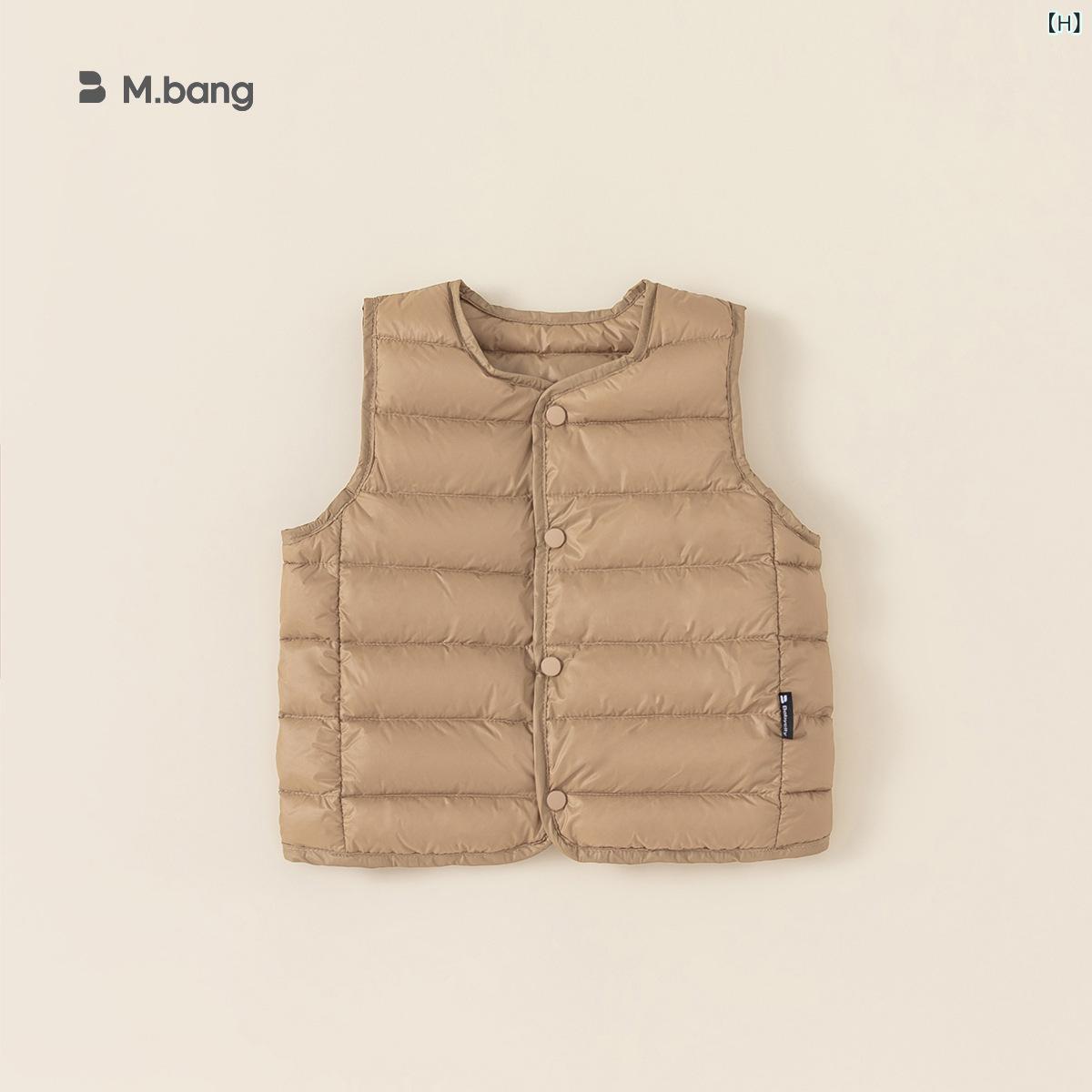 子供服 ダウンベスト 秋冬 女児 男児 兼用 キッズ ベビー 新国标 白ダウン 80 90 100 110 120 130 140 150 冬 保温 防寒 無地 チョッキ アウター ウェア ピンク系 黒 カーキ 白
