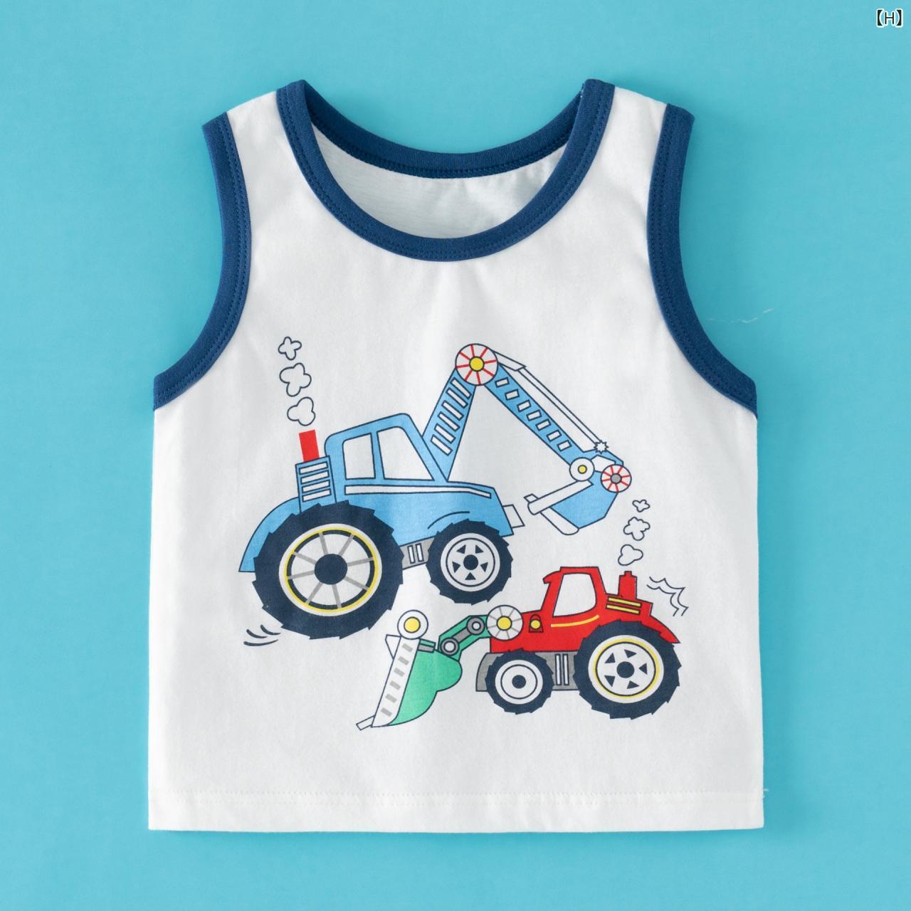 ベビー キッズ タンクトップ ノースリーブ カットソー 薄手 綿100% 子供 男の子 かわいい 恐竜柄 車柄 アニマル柄 夏 春夏 80 90 100 110 120 130