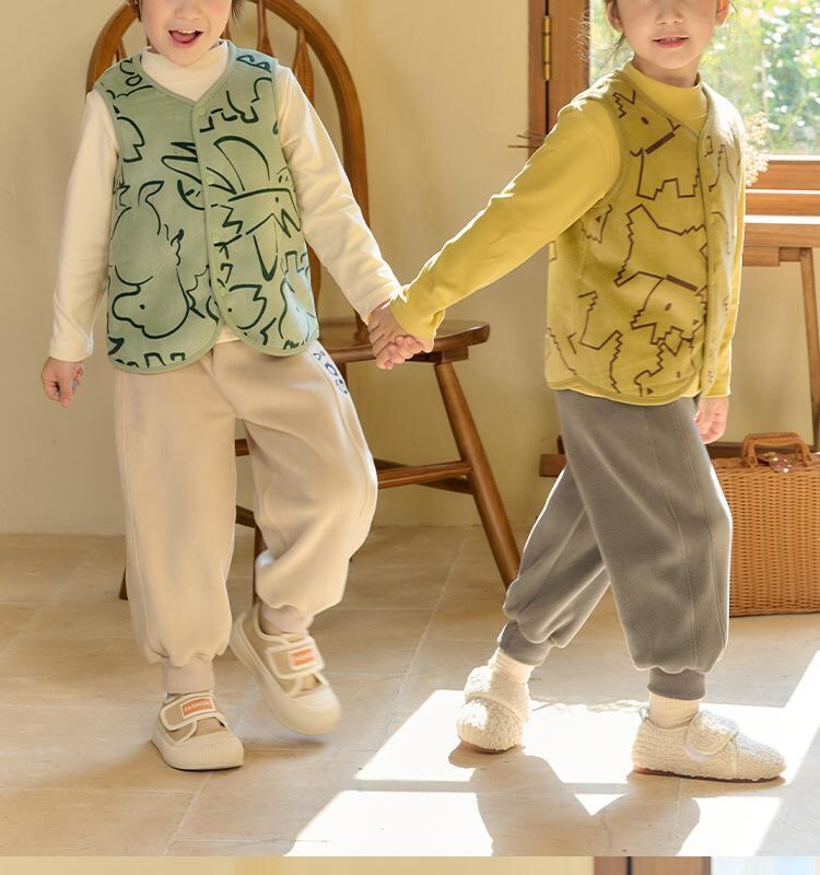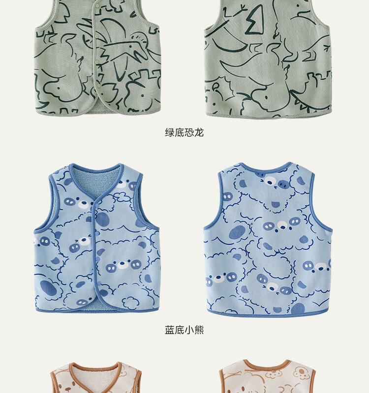 子供服 ベスト キッズ ベビー フリース ベスト リバーシブル 両面着用 ふわふわ チョッキ かわいい クマ ウサギ 恐竜 アヒル 犬柄 90 100 110 120 130 140cm