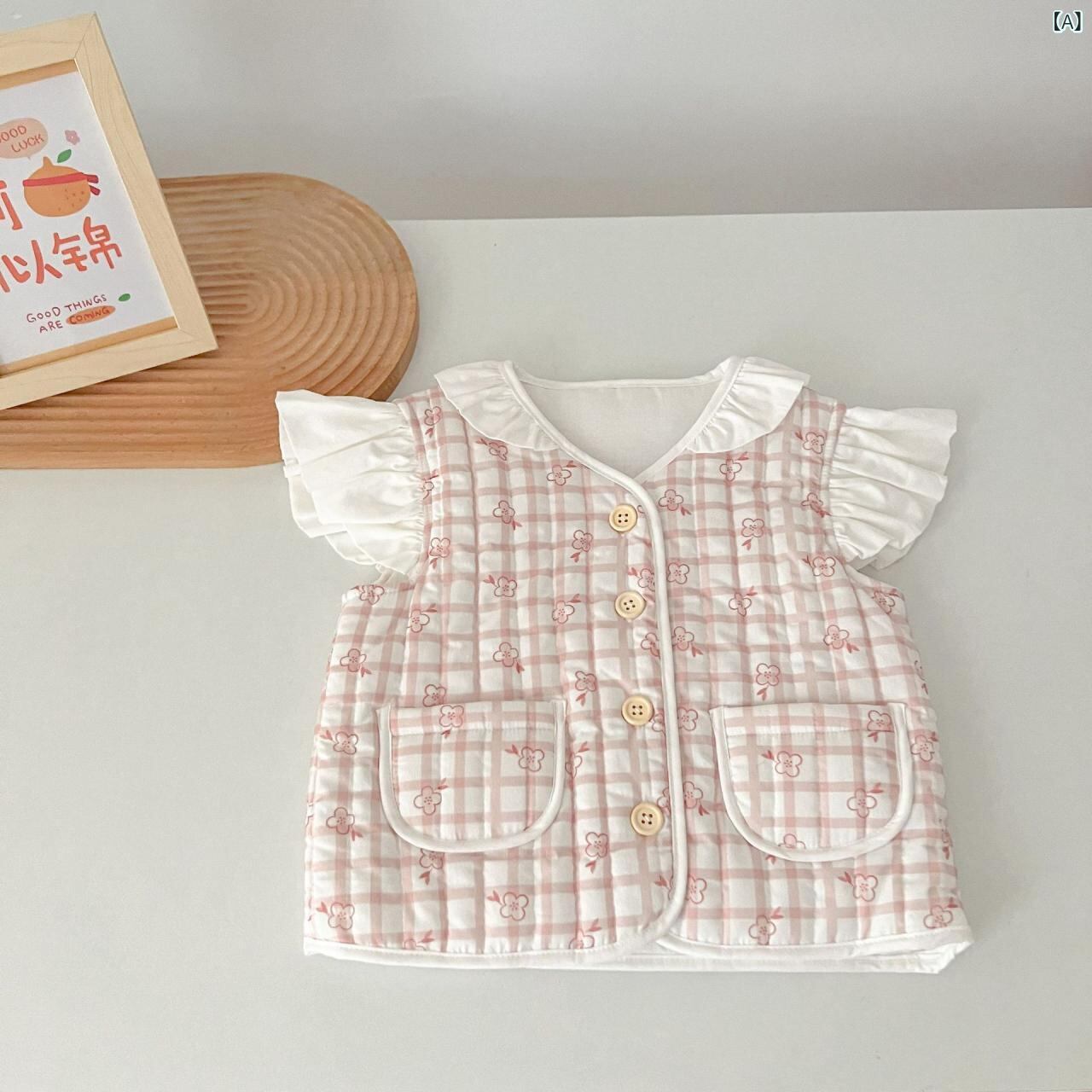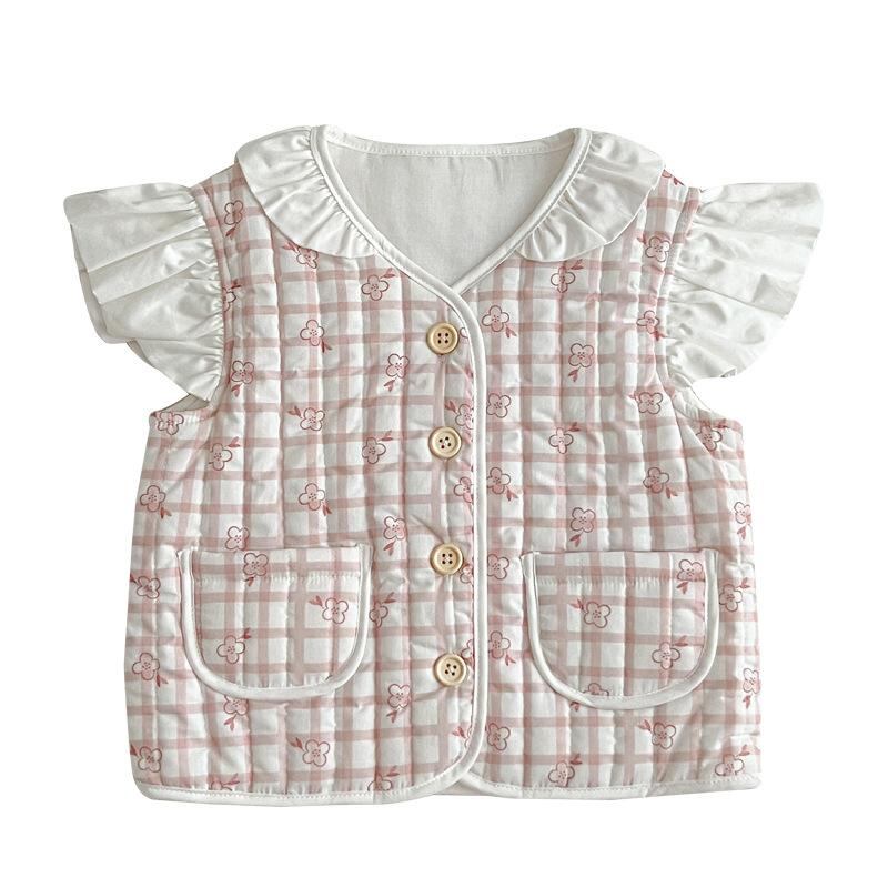 ベビー服 マタニティウェア ベスト 女の子 秋 冬 防寒着 厚手 コットン あったか かわいい 花柄 小花 ウサギ クマ 裏地付き 73 80 90 100 110