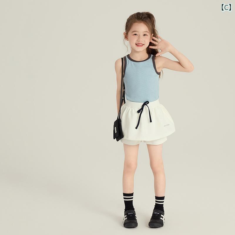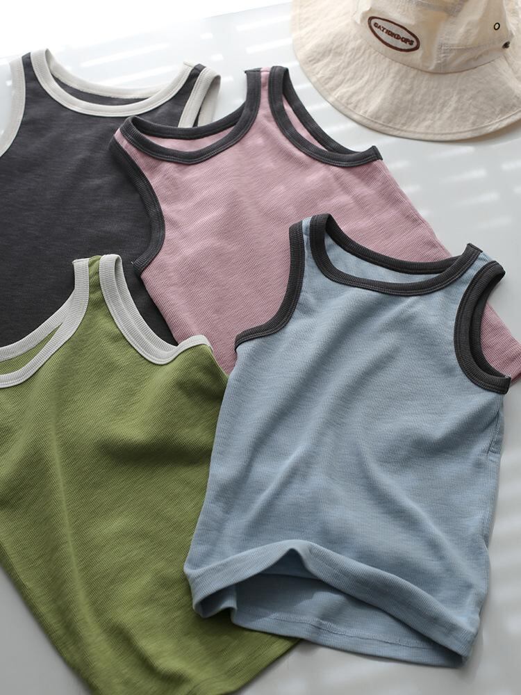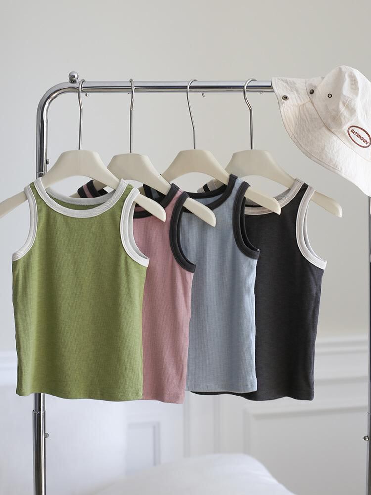 キッズ 女の子 タンクトップ 春夏 子供服 配色 ノースリーブ トップス カットソー カジュアル かわいい ガールズ 伸縮性 ストレッチ やわらか ふんわり