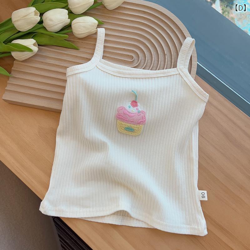 タンクトップ キッズ 女の子 ノースリーブ ニット トップス 春夏 子供服 キャミソール かわいい 刺繡 ストレッチ パステルカラー 幼稚園 保育園 通園 普段着 | Kneebaファッションショップ