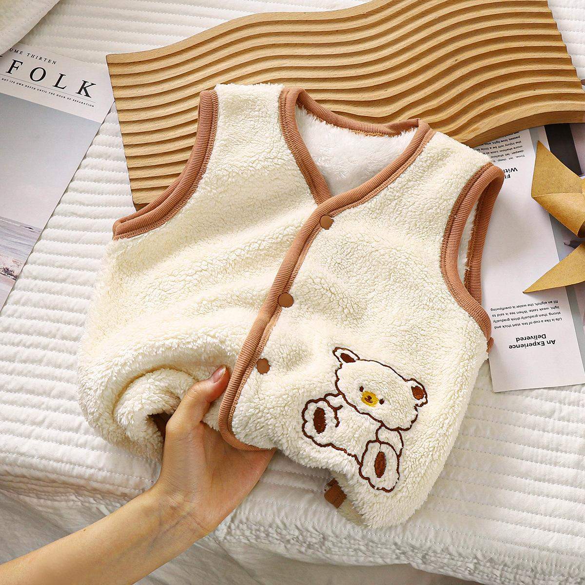 子供用ベスト 秋冬 韓国風 ボア 刺繍 小熊 スナップボタン アウター 防寒 普段使い