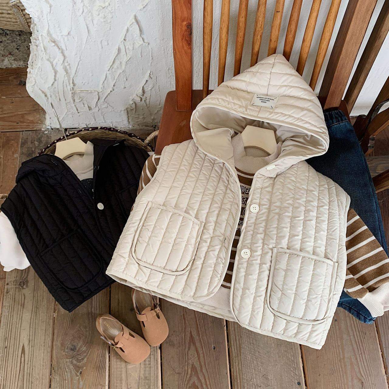 子供服 ベスト 秋冬 ストライプ パッチワーク フード付き 男女兼用 アウター ゆったり かわいい 柔らかい 綿100% 通園 通学