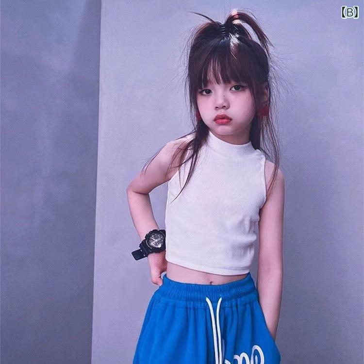 キッズ タンクトップ 女の子 子供服 高めネック ノースリーブ トップス ジャズダンス 発表会 練習着 親子コーデ コットン 綿100% 120 130 140 150 160 170