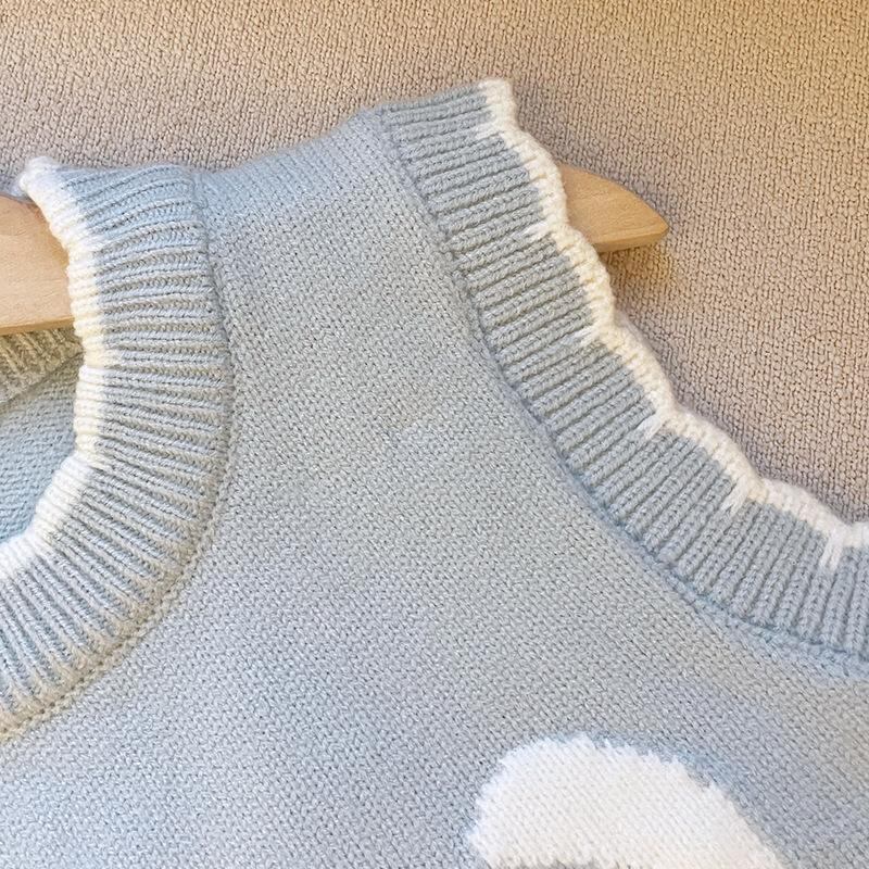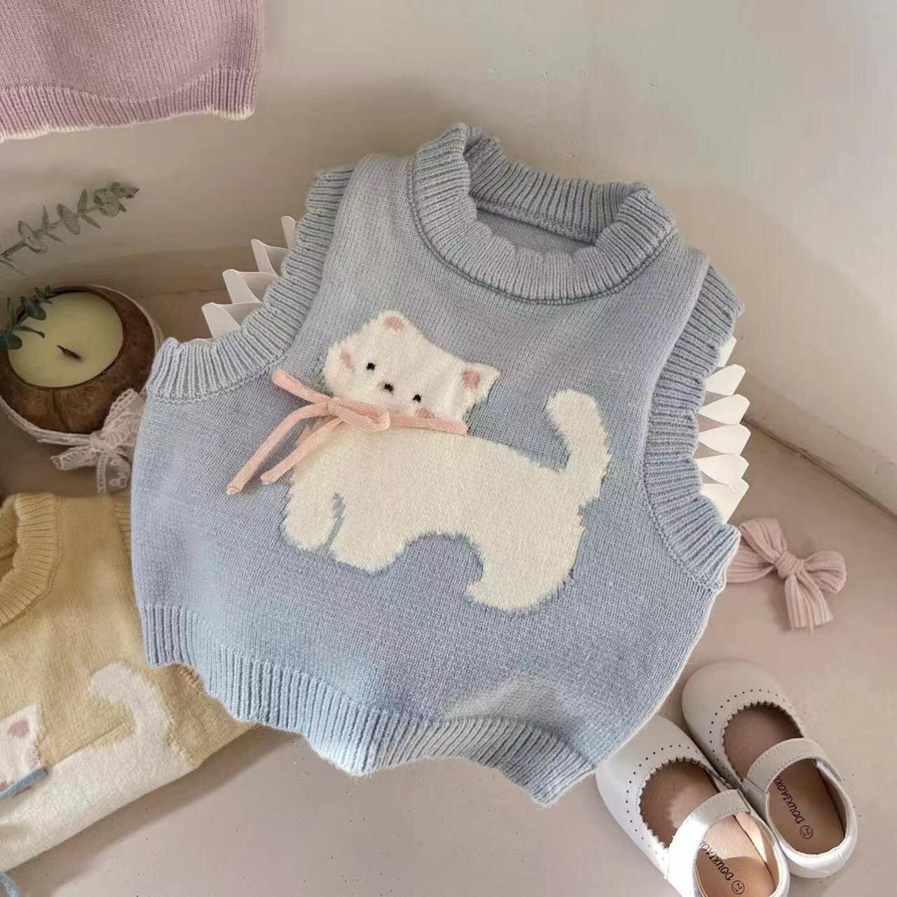 子供服 ニットベスト 女の子 かわいい 猫柄 春秋 ベスト 小学生 中学生 通園 通学 防寒着 普段使い レイヤードスタイル