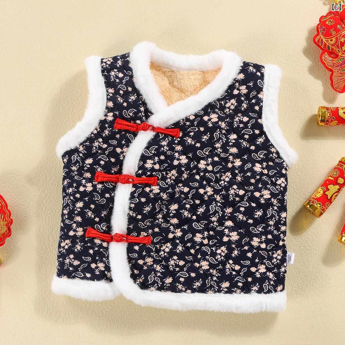 子供服 ベスト 女児 中綿入り 国風 秋冬 あったか 防寒着 チョッキ ベビー服 女の子 民族衣装風 花柄 裏起毛 厚手 かわいい おしゃれ ピンク系