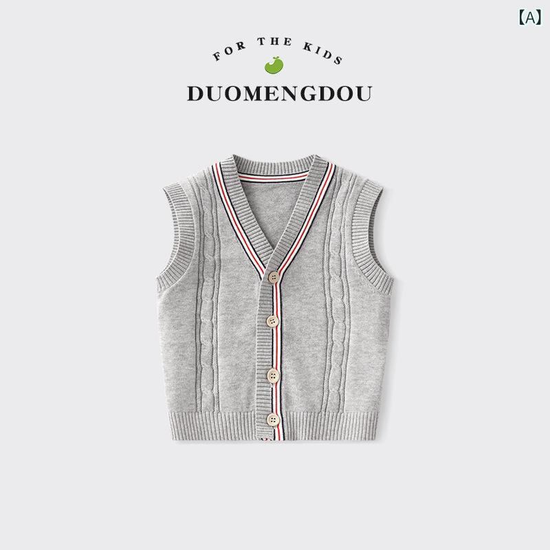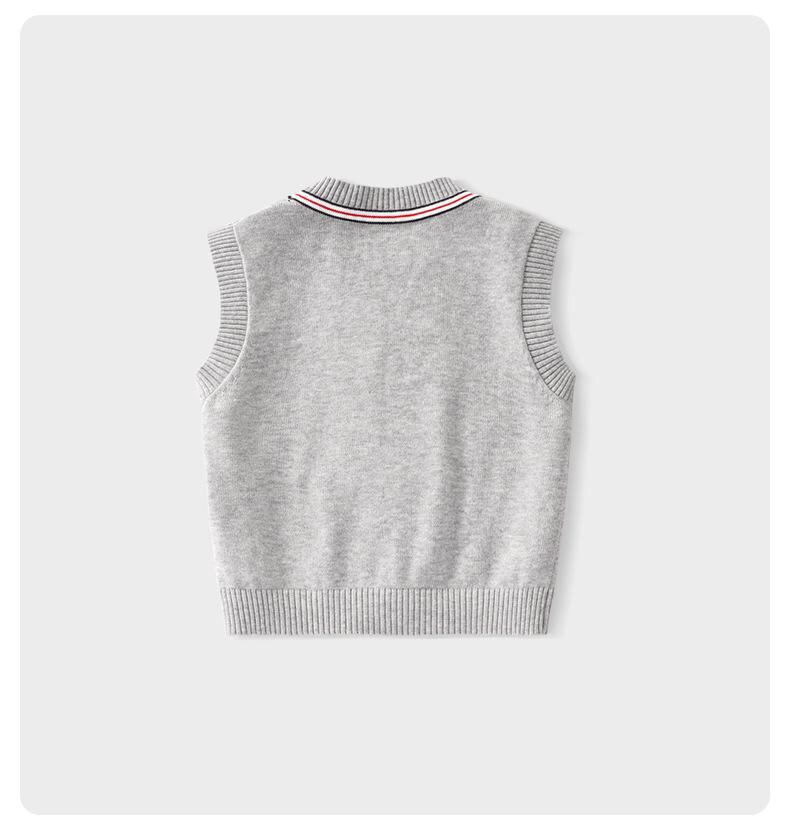 子供服 ベスト 男の子 ニット セーター Vネック コットン100% 春秋 カジュアル 普段使い グレー