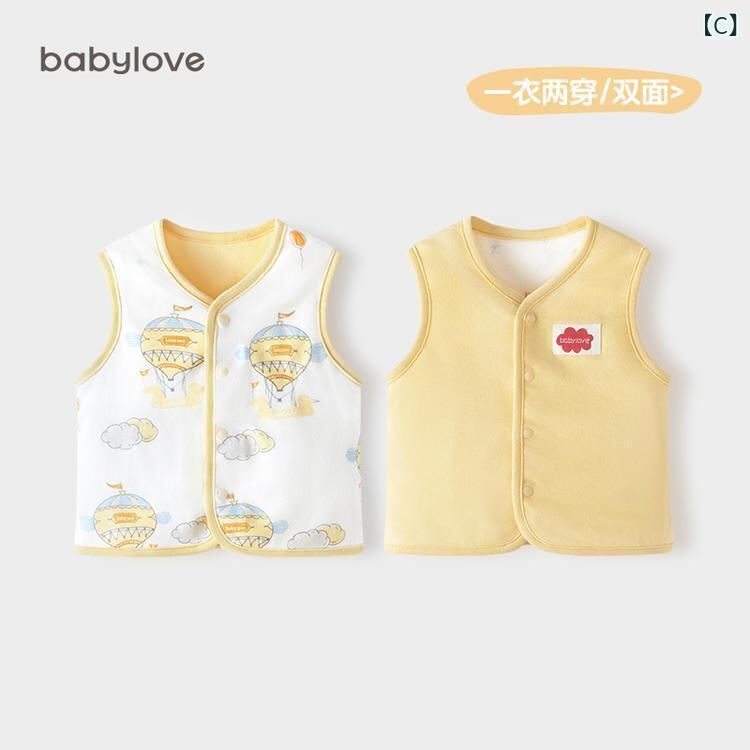 ベビー服 春秋用ベスト 綿100% 赤ちゃん 新生児 ノースリーブ 部屋着 普段使い かわいい 60 70 80 90cm 男の子 女の子 ダブルフェイス