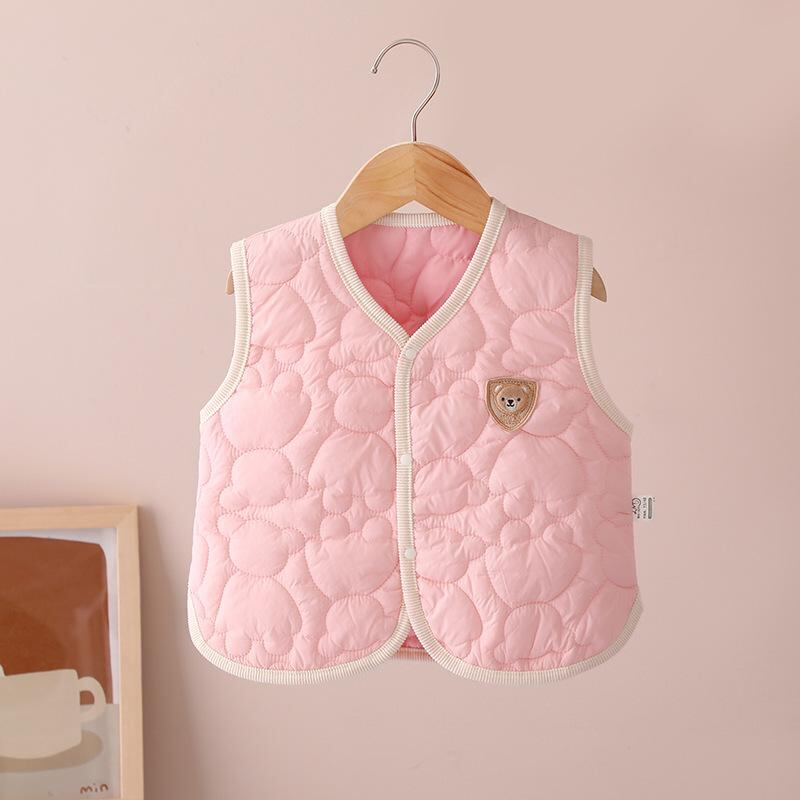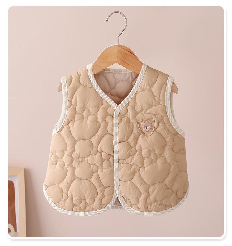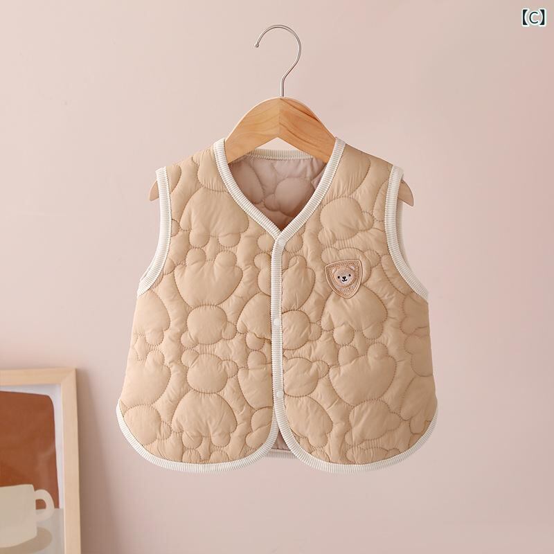 ベビー服 子供用ベスト 薄手 ベビー ベスト 赤ちゃん 新生児 幼児 男女兼用 春秋 前開き スナップボタン チョッキ かわいい クマ 刺繍 66cm 73cm 80cm 90cm 100cm