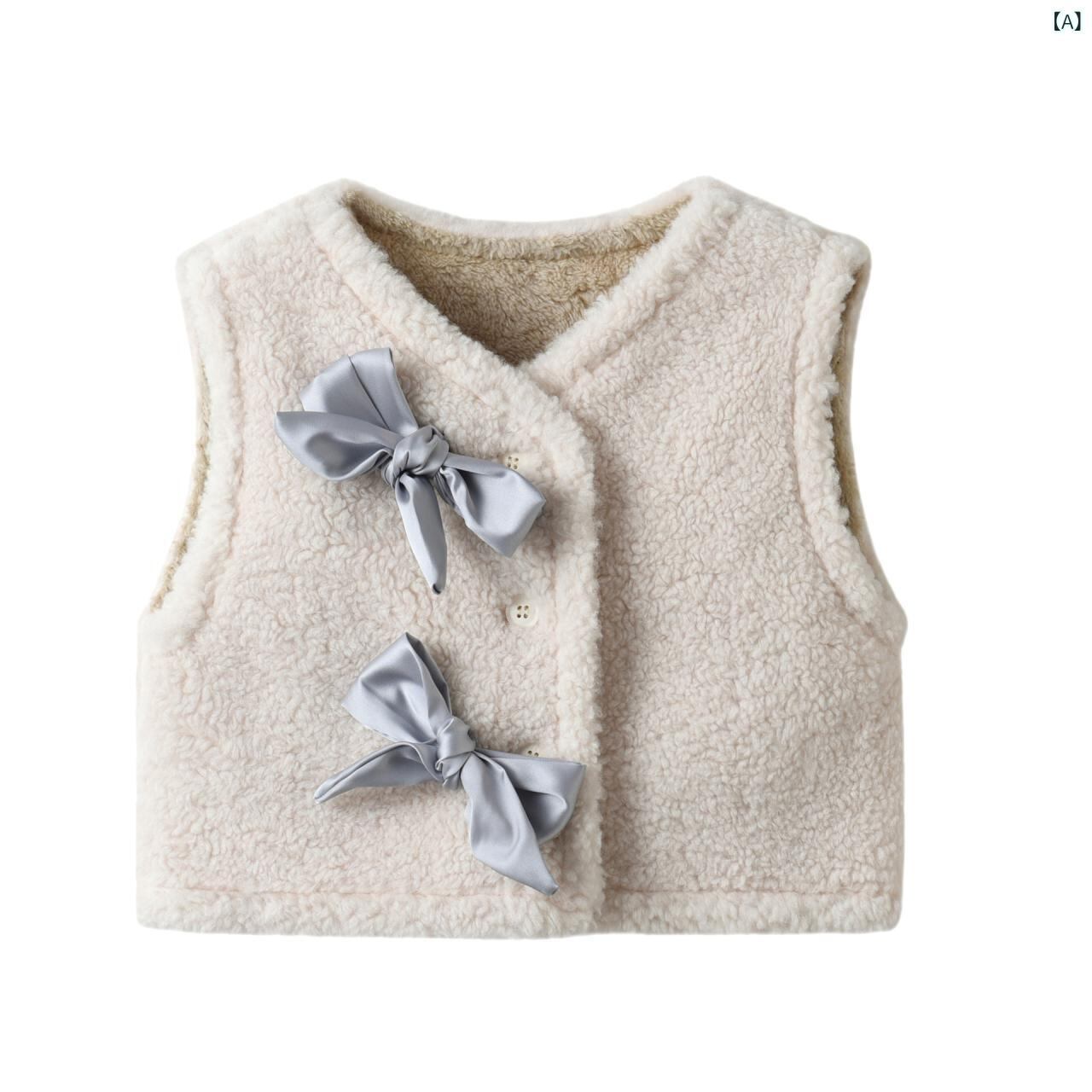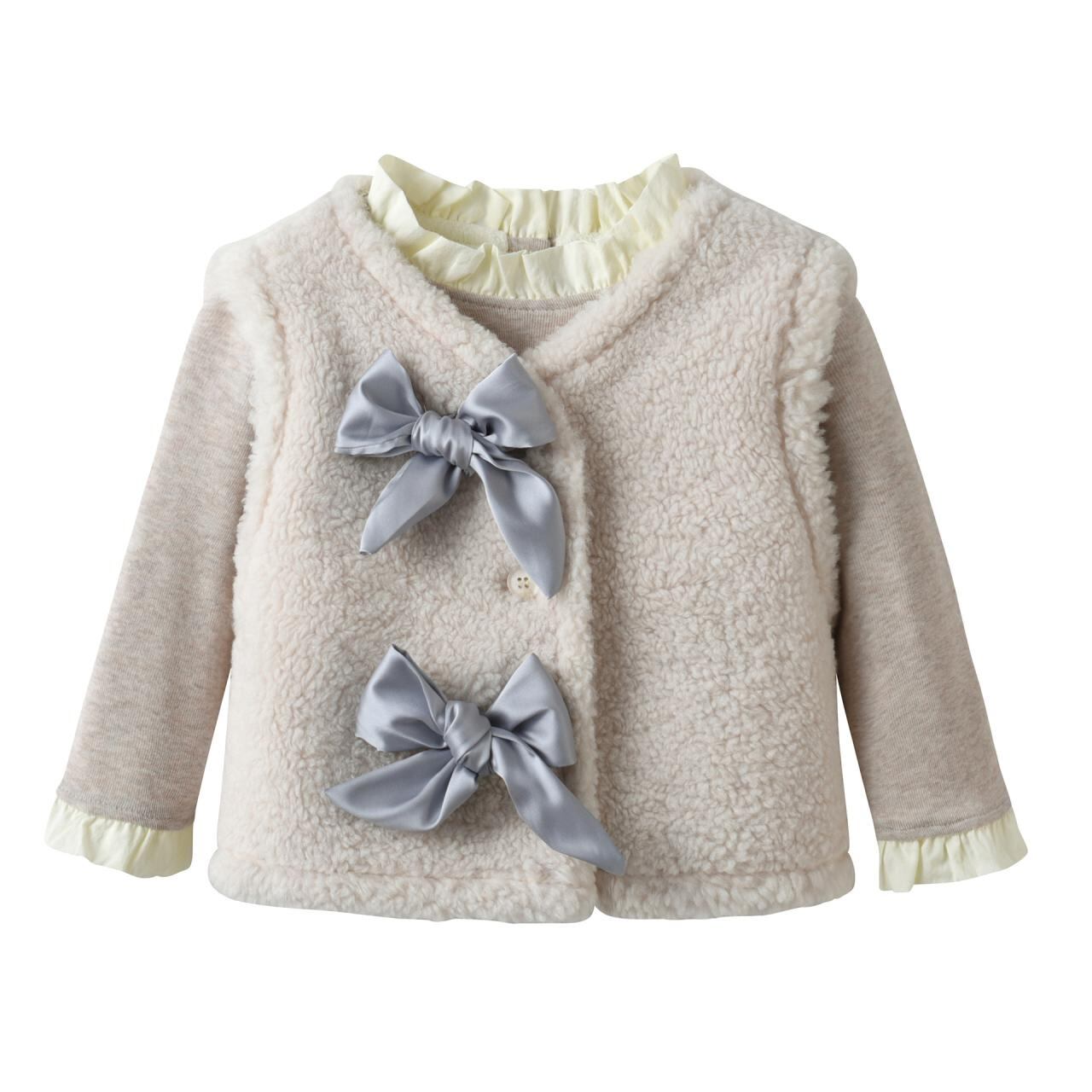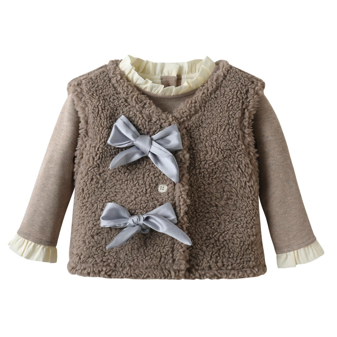 子供用ベスト 秋冬 韓国風 リボン付き 二重起毛 暖か ベビー Vネック アウター 防寒着 66cm 73cm 80cm 90cm