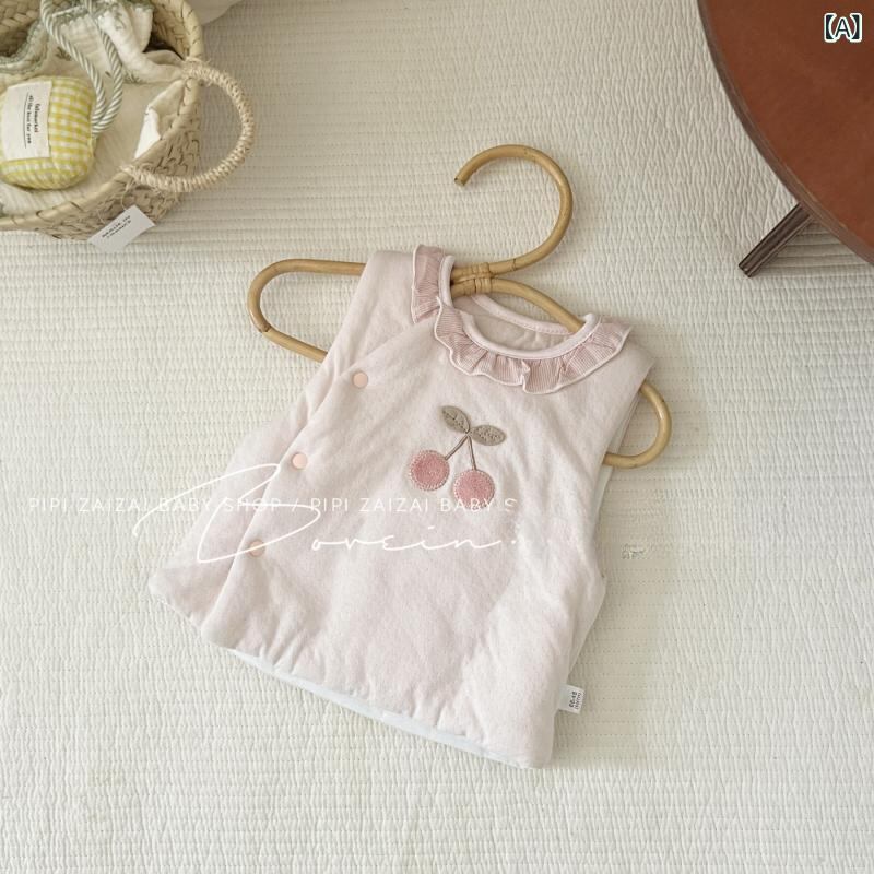 ベビー服 女の子用 中綿入りベスト 刺繡入り さくらんぼ ワンポイント ポリエステル あったか 防寒着