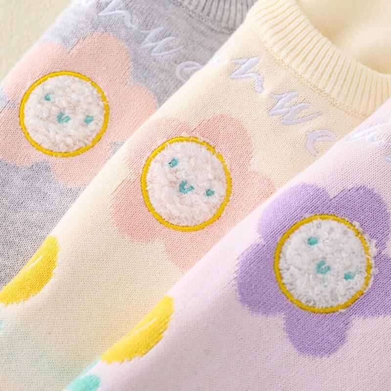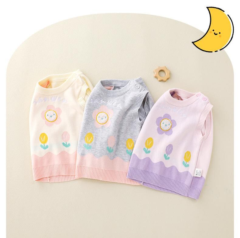 ベビー & キッズ ニットベスト 花柄 刺繍 コットン 春秋 冬 73 80 90 100 110 120 130 140cm かわいい 普段使い