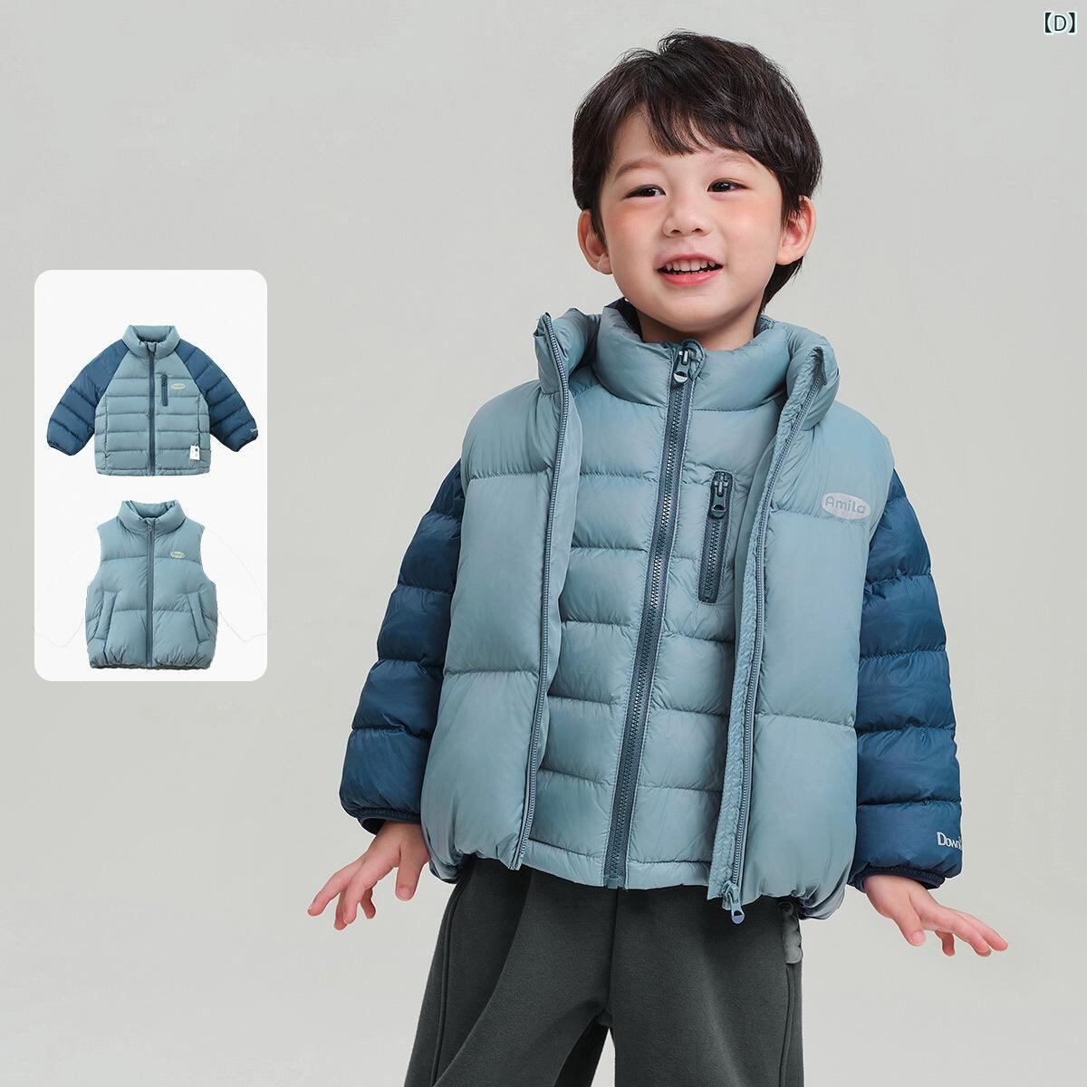 子供服 冬用羽毛ジャケット ベスト セット 男の子 女の子 3way 幼児 小学生 向け 防寒着 上着 アウター