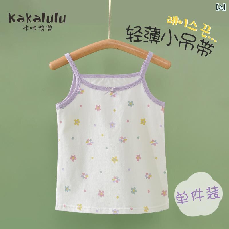 子供用タンクトップ 女児 春夏 薄手 綿100% 吊り下げ式 Aクラス 腹巻付き 肌着 トップス 花柄 100 110 120 130 140 150