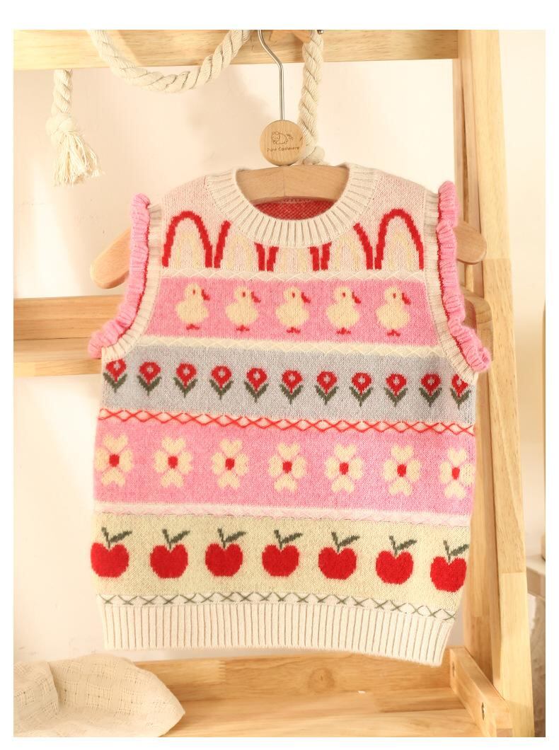 子供服 ベスト 女の子 ベビー 羊毛 混紡 かわいい フリル袖 ノースリーブ トップス 防寒 秋冬 ピンク系