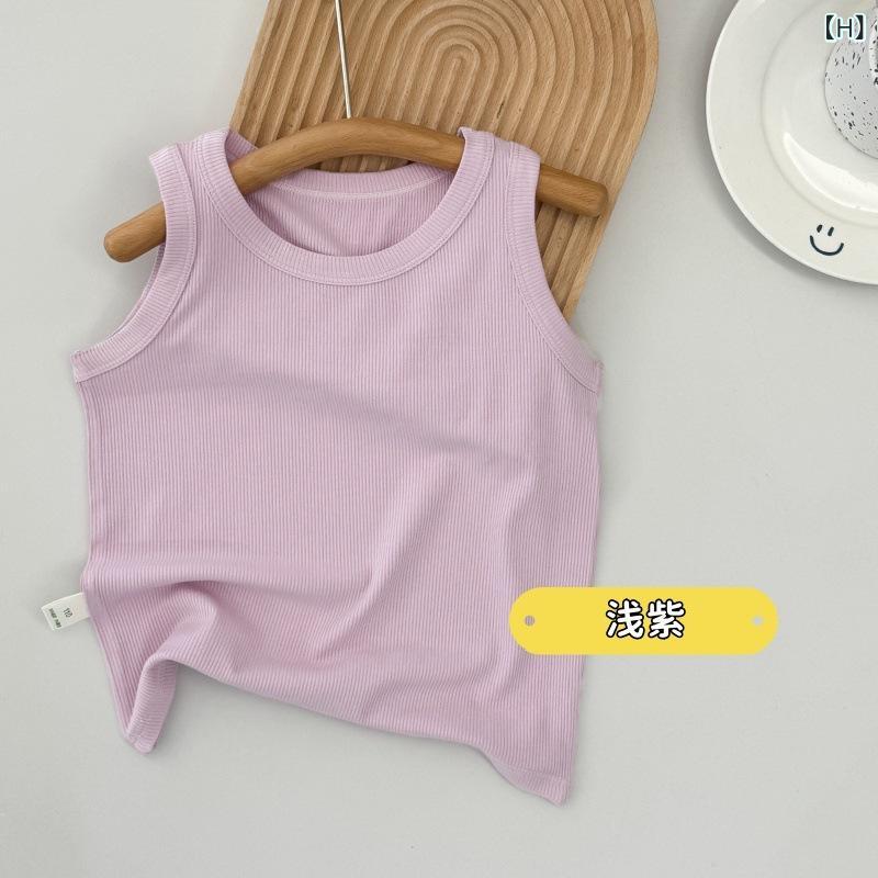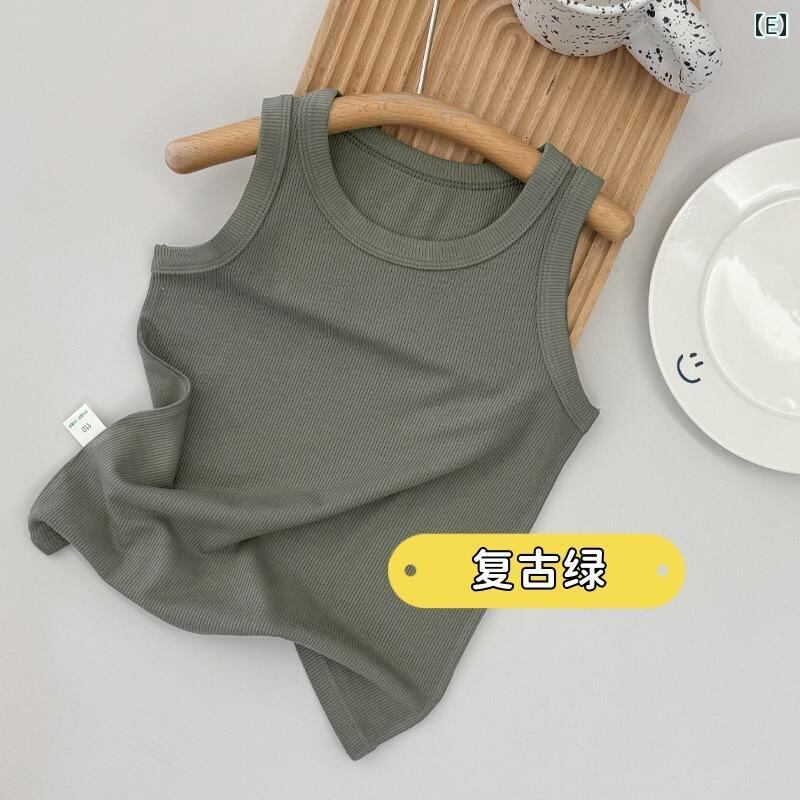 子供用タンクトップ ベビー 男女兼用 ノースリーブ トップス 吸汗 通気性 リブ編み 無地 カットソー 深灰 深咖 红木棕 火龙果 复古绿 ブラック ホワイト 浅紫 浅粉 イエロー カーキ 黒白条纹 麻灰条纹 浅灰 再生繊維 春夏