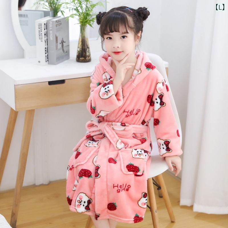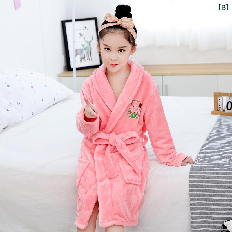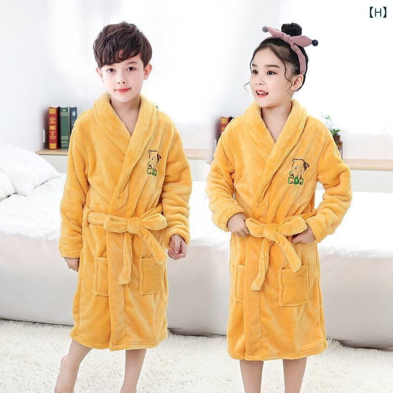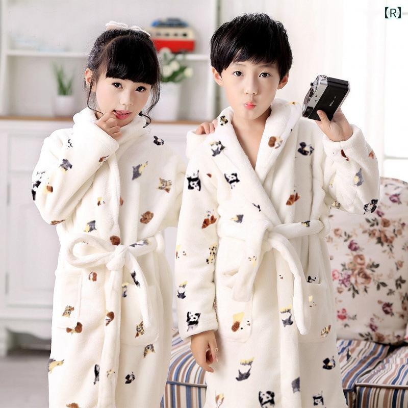 子供用バスローブ キッズパジャマ 男の子 女の子 秋冬 厚手 フランネル 珊瑚フリース あったか 部屋着 海老茶色 無地 吸水速乾