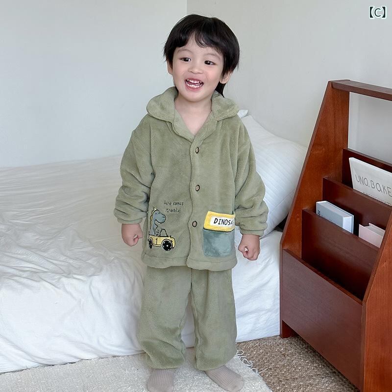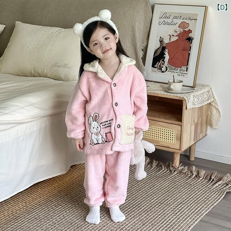 子供用ルームウェア 女の子 フランネル あったか パジャマ かわいい 襟付き カーディガン 100cm 110cm 120cm 130cm 140cm 150cm 160cm 部屋着 防寒 ディーディー鹿 フィード熊 恐竜 雪肤兔 ブース熊