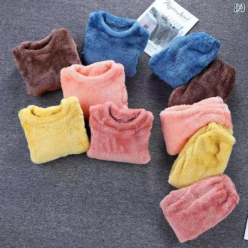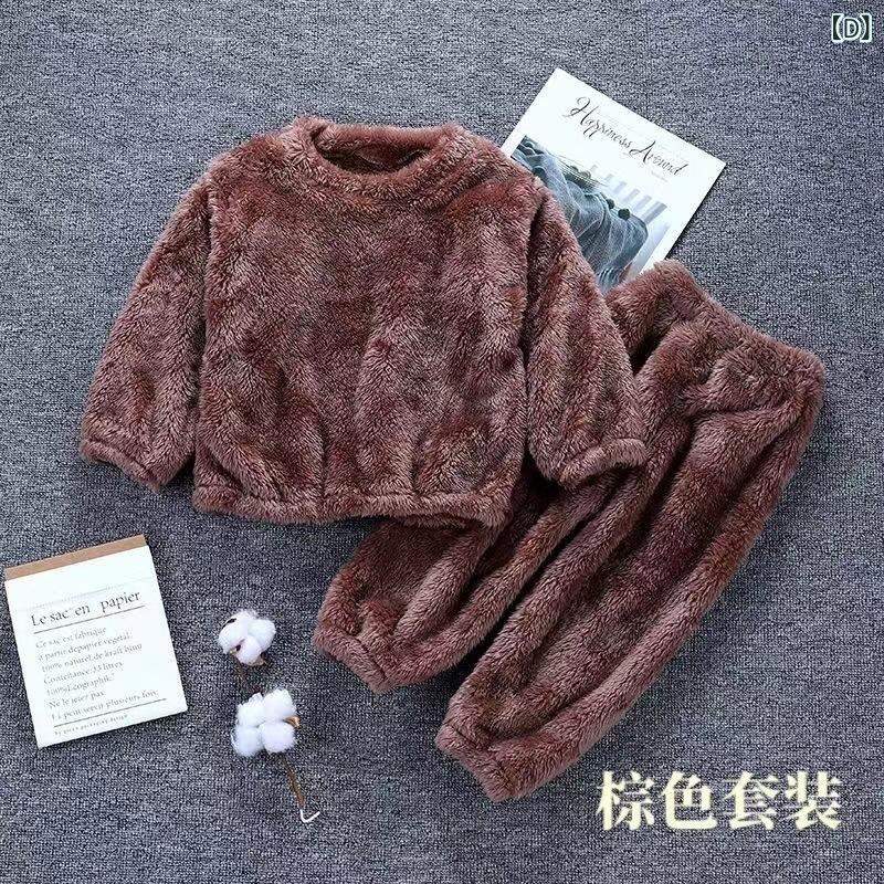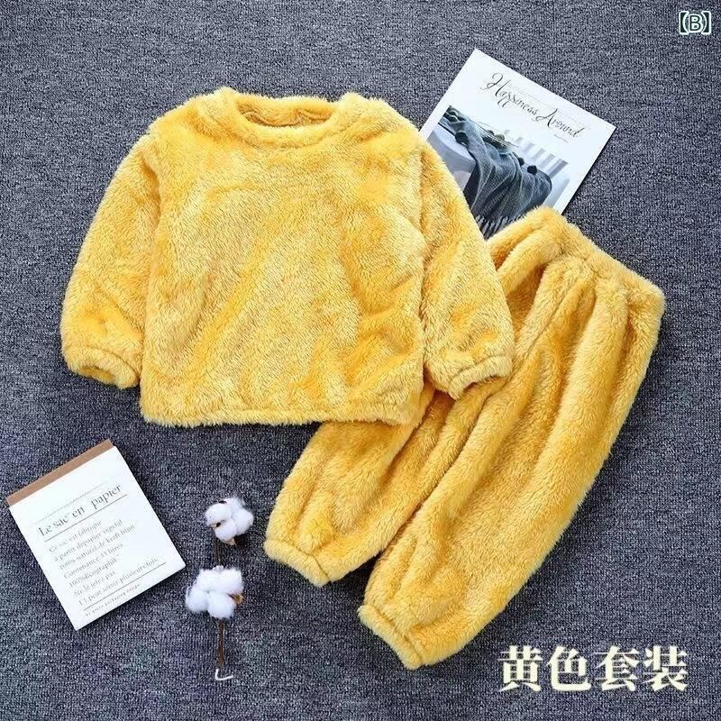 子供用ルームウェア 男児 女児 パジャマ 上下セット 厚手 フランネル 秋冬 ピンク イエロー ブルー ブラウン 8歳以上 140cm以上 部屋着