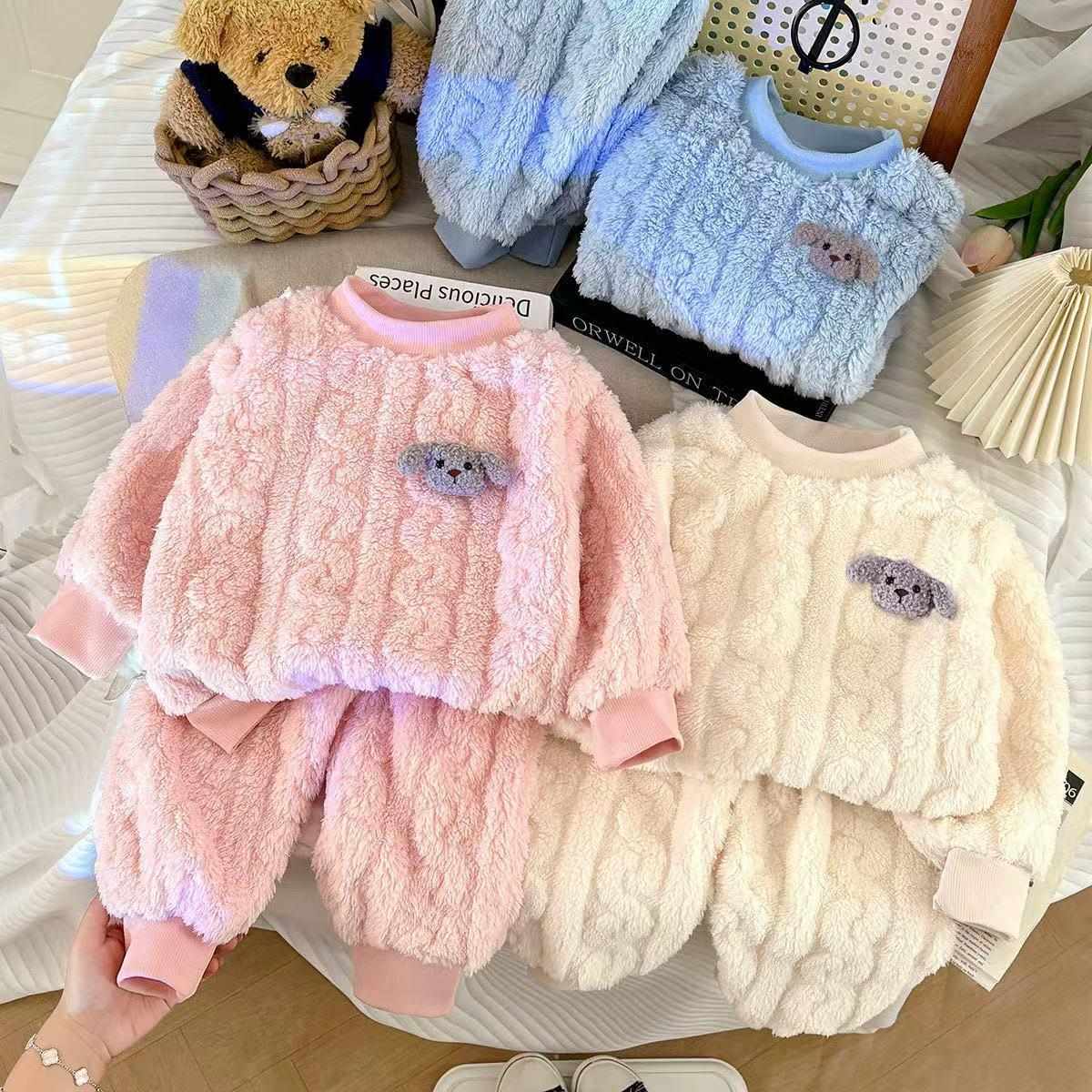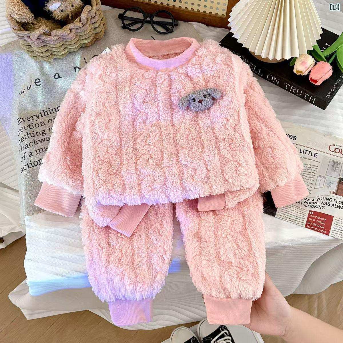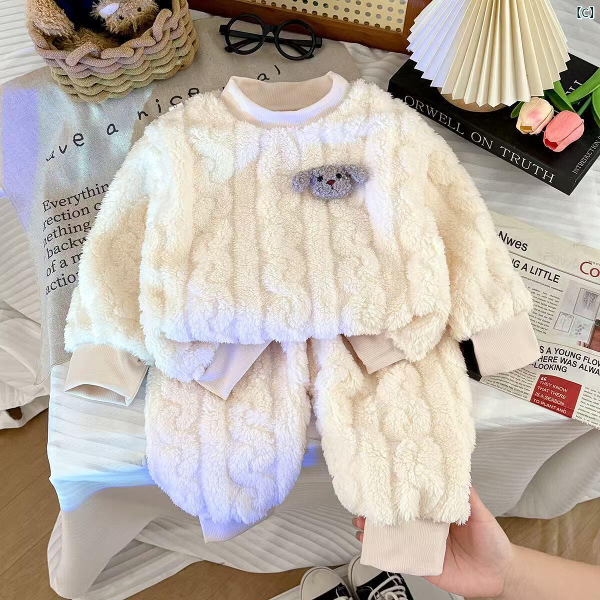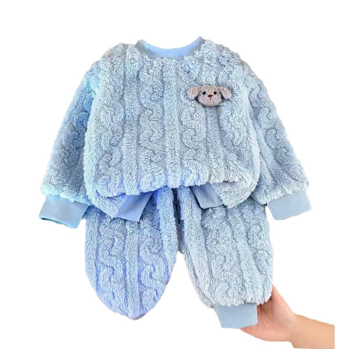 子供用パジャマ 秋冬 珊瑚フリース 厚手 女児 フランネル セットアップ プルオーバー ホームウェア 保温性 部屋着 かわいい ブルー ピンク系 アイボリー 80 90 100 110 120 130 140
