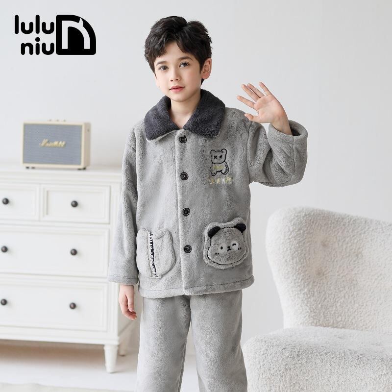 子供服 パジャマ 男の子 秋冬 フランネル 厚手 暖かい 珊瑚フリース 部屋着 寝巻き グレー あったか