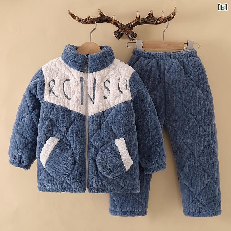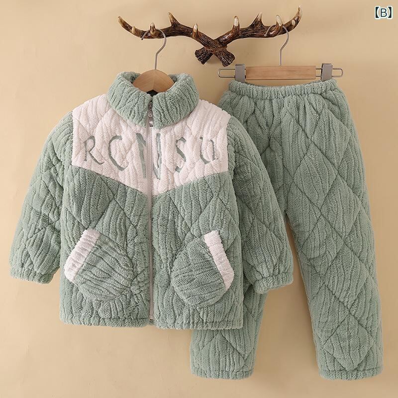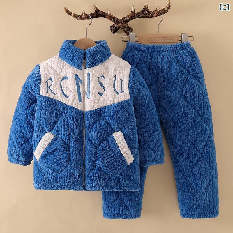 子供用パジャマ 冬季 3層 夹棉 フランネル 珊瑚绒 男の子 女の子 厚手 ルームウェア 保温性 柔らかい ふわふわ かわいい