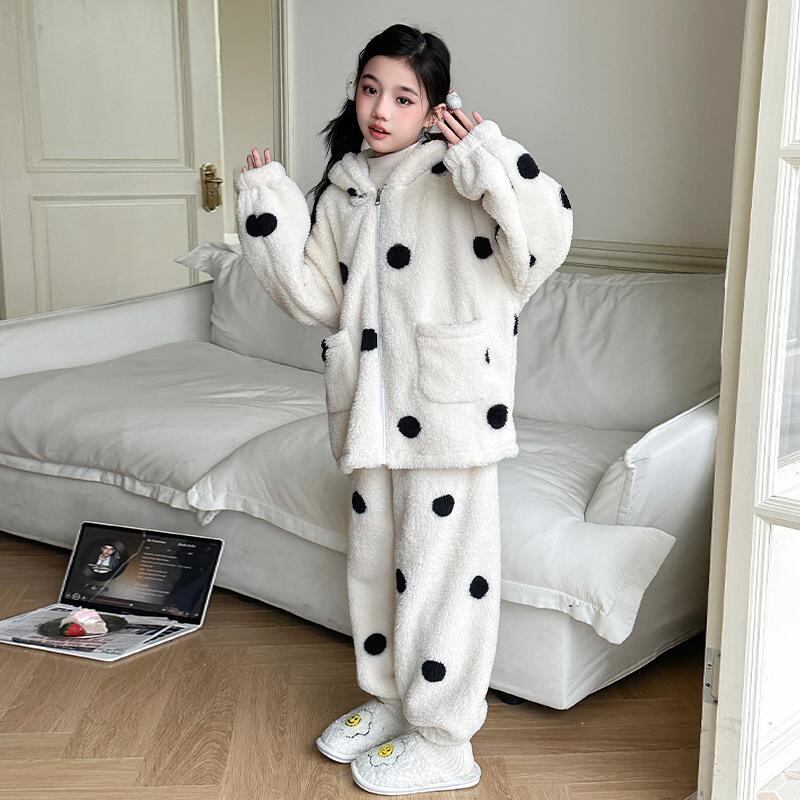 子供服 パジャマ 上下セット フランネル 女の子 フード付き 厚手 防寒 暖かい ヒョウ柄 ドット柄 春秋冬 部屋着 ルームウェア