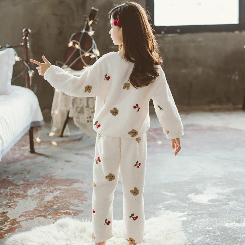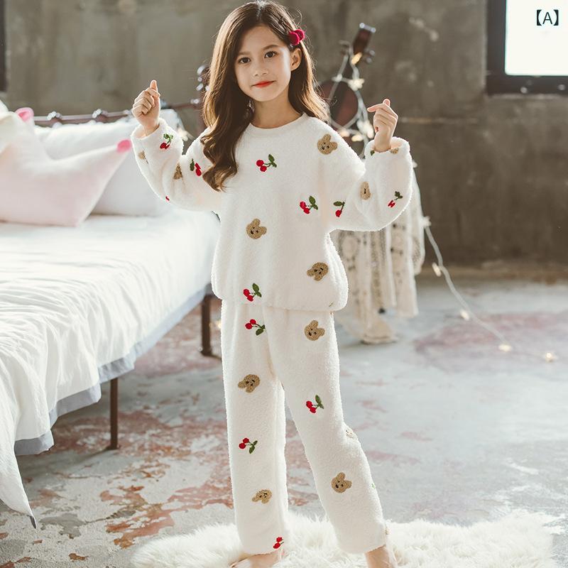 子供用パジャマ 女の子 秋冬 珊瑚フリース フランネル 厚手 ホームウェア 上下セット 部屋着