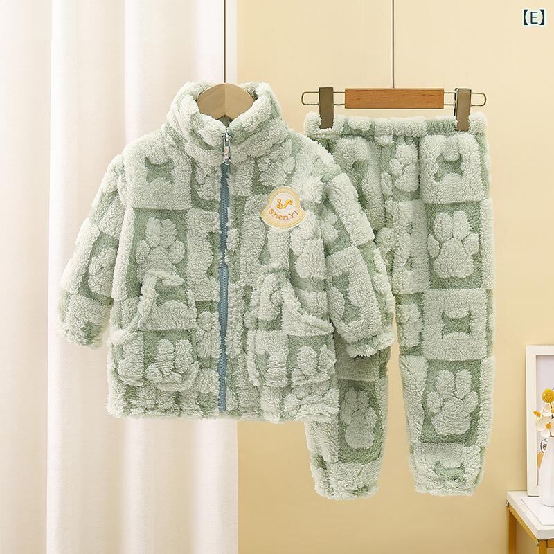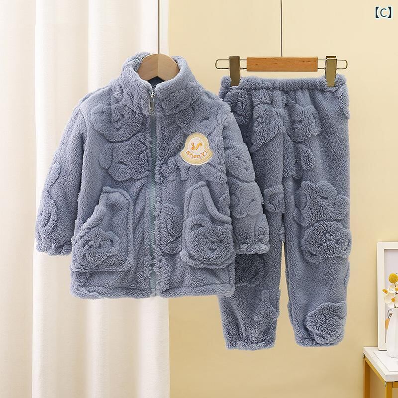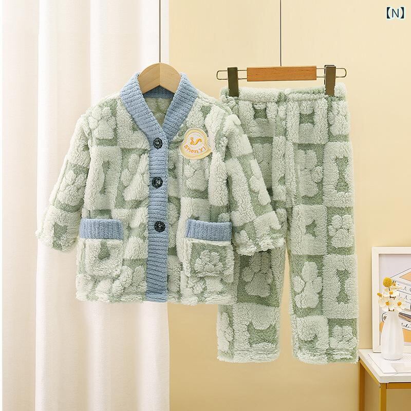 子供用パジャマ 上下セット フランネル 暖かい 厚手 秋冬 男の子 女の子 ルームウェア 部屋着 かわいい おしゃれ 吸湿速乾 8歳以上 中大サイズ 熊柄 小熊 ベア チェック ストライプ 無地 伸縮性