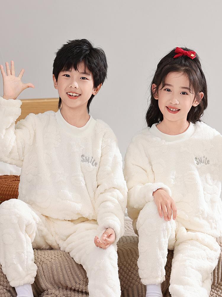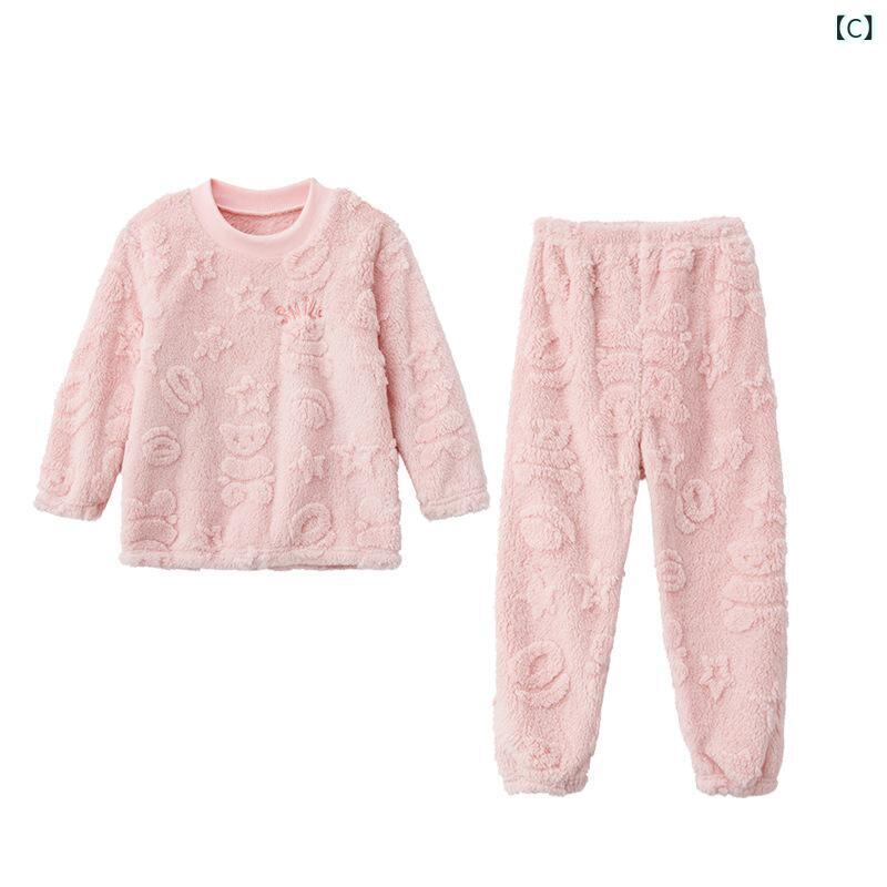 子供用パジャマ 秋冬 キッズ 男の子 女の子 フランネル 暖かい 厚手 サンゴフリース ルームウェア 上下セット かわいい クマ柄 無地 保温 防寒