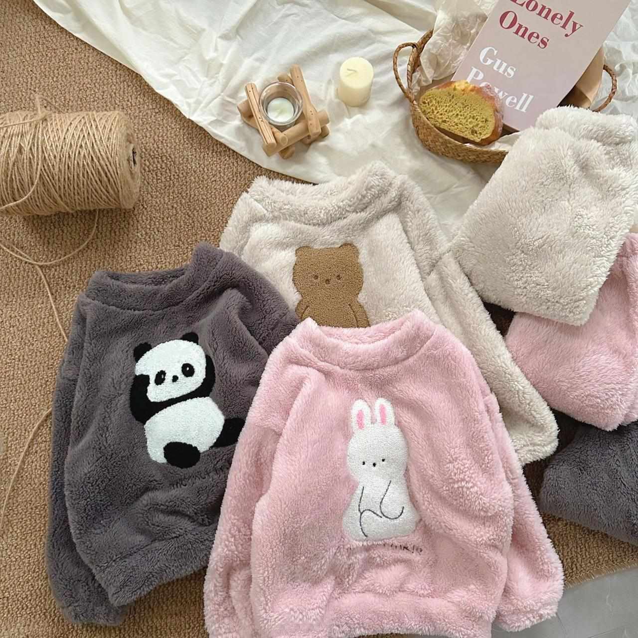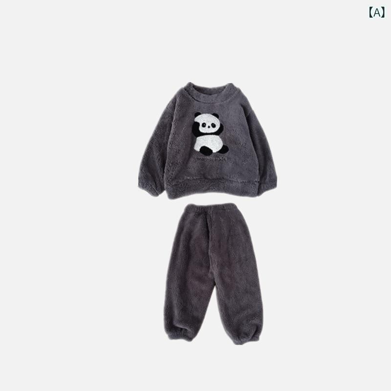 子供用パジャマ キッズ フランネル 厚手 上下セット 暖か 部屋着 かわいい 冬 グレー ピンク ベージュ 90 100 110 120 130 140
