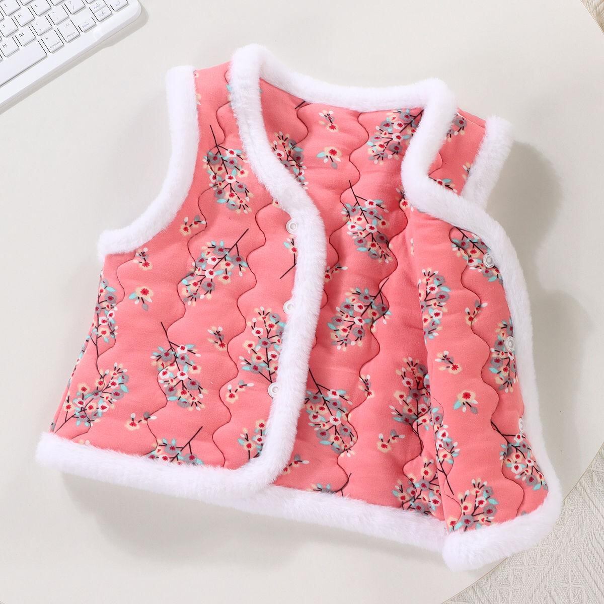 子供服 ベスト 女の子 中綿ベスト 東北大花柄 秋冬 あったかチョッキ 防寒着 ガールズ ウェア 和風 80 90 100 110 120 130 140 レッド ピンク系 ブルー