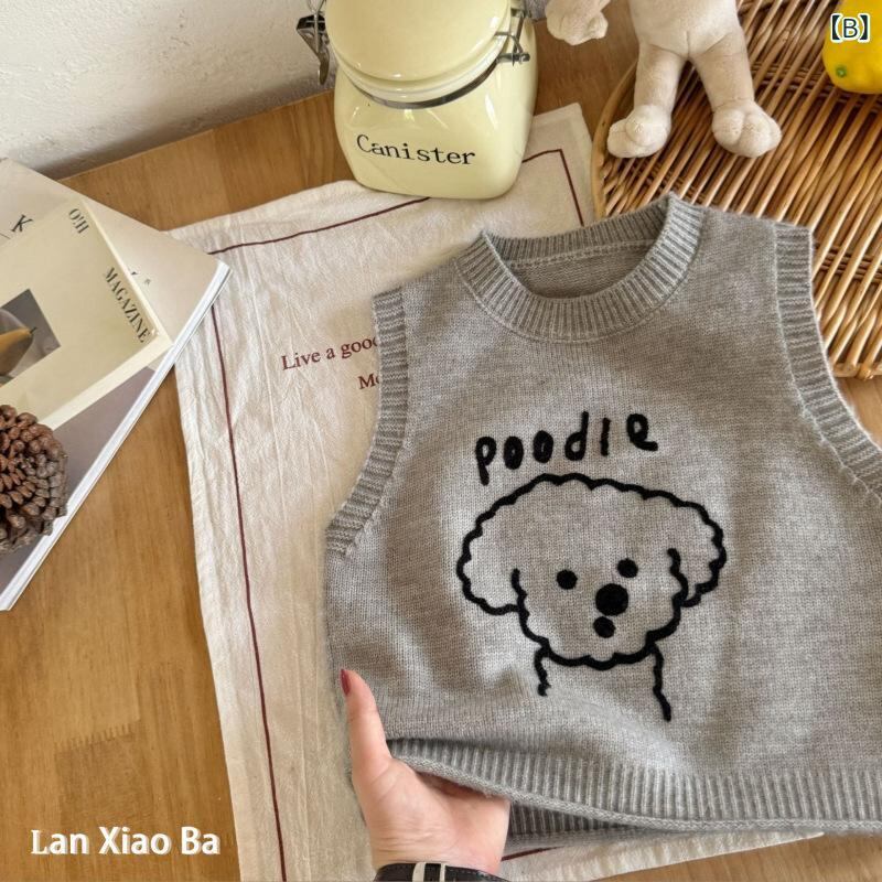 子供服 ベスト 男の子 ニット セーター 春秋 男女兼用 小犬柄 子ども ベビー服 チョッキ 普段着 かわいい コットン 90 100 110 120 130 140 グレー アイボリー