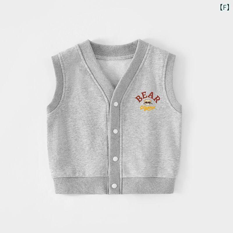 キッズ ベスト 春秋 ニット 男の子 女の子 子供 ベビー服 ファッション かわいい コットン 花柄 グレー ベージュ ブラック 小熊